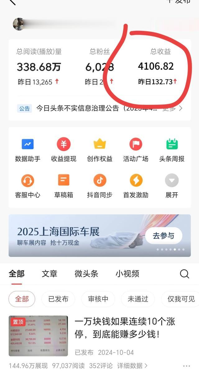 在自媒体蓬勃发展的今天,今日头条无疑是众多创作者的重要舞台。然而,越来越多的创作者发现,头条的收益正在逐渐走低,这就像一片阴云,笼罩在创作者们的心间。不过还是要感谢今日头条,让我接触了自媒体创作,我来头条已经200多天了,创作收入4100多块,不知道算不算少。