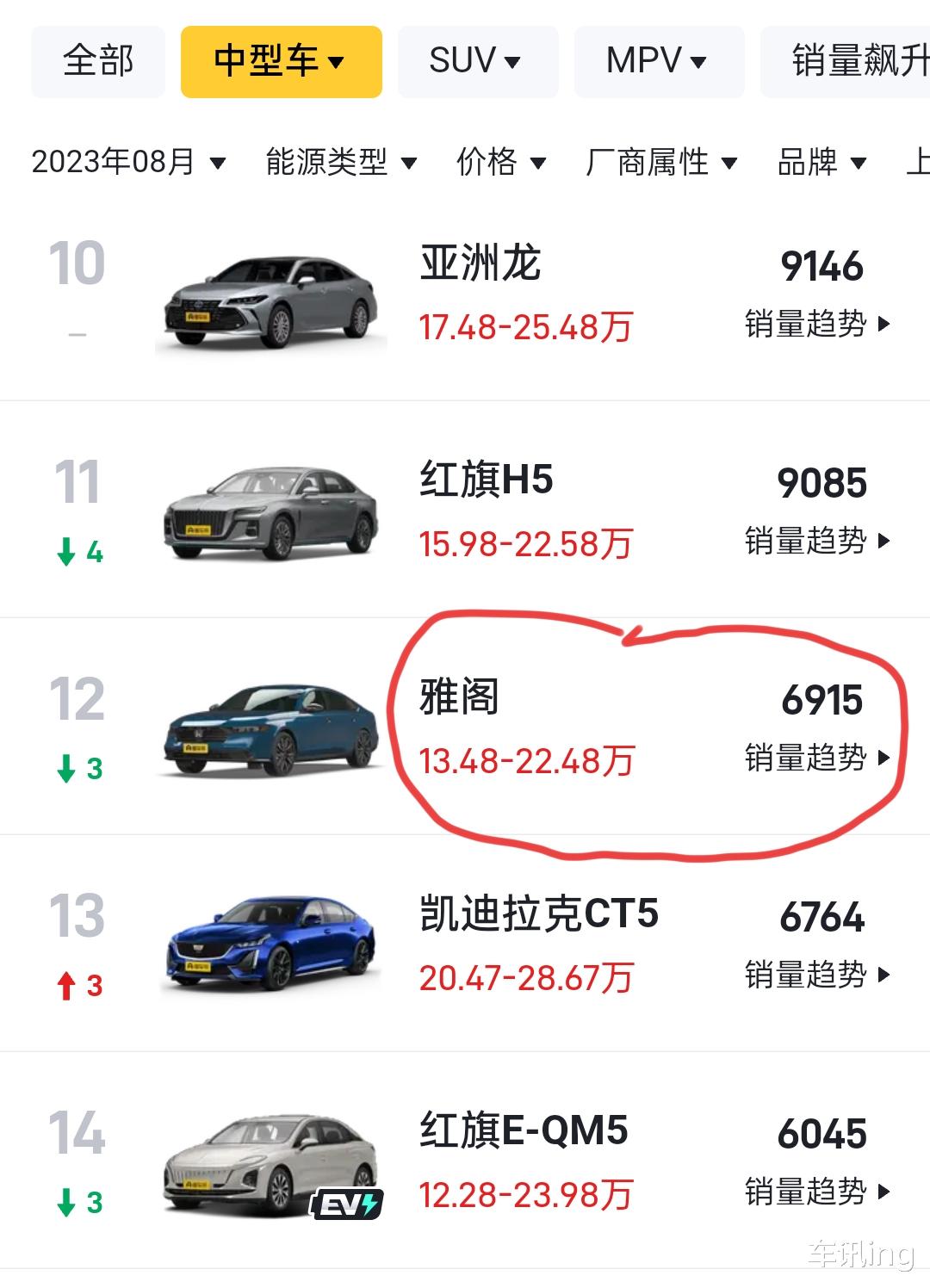 部分原因可能是因为新能源汽车的崛起,如比亚迪汉DMI冠军、极氪等,以及国产中高端车型,如深蓝SL和奇瑞艾瑞泽,销售不断攀升,使第代雅阁逐渐失去了市场份额。