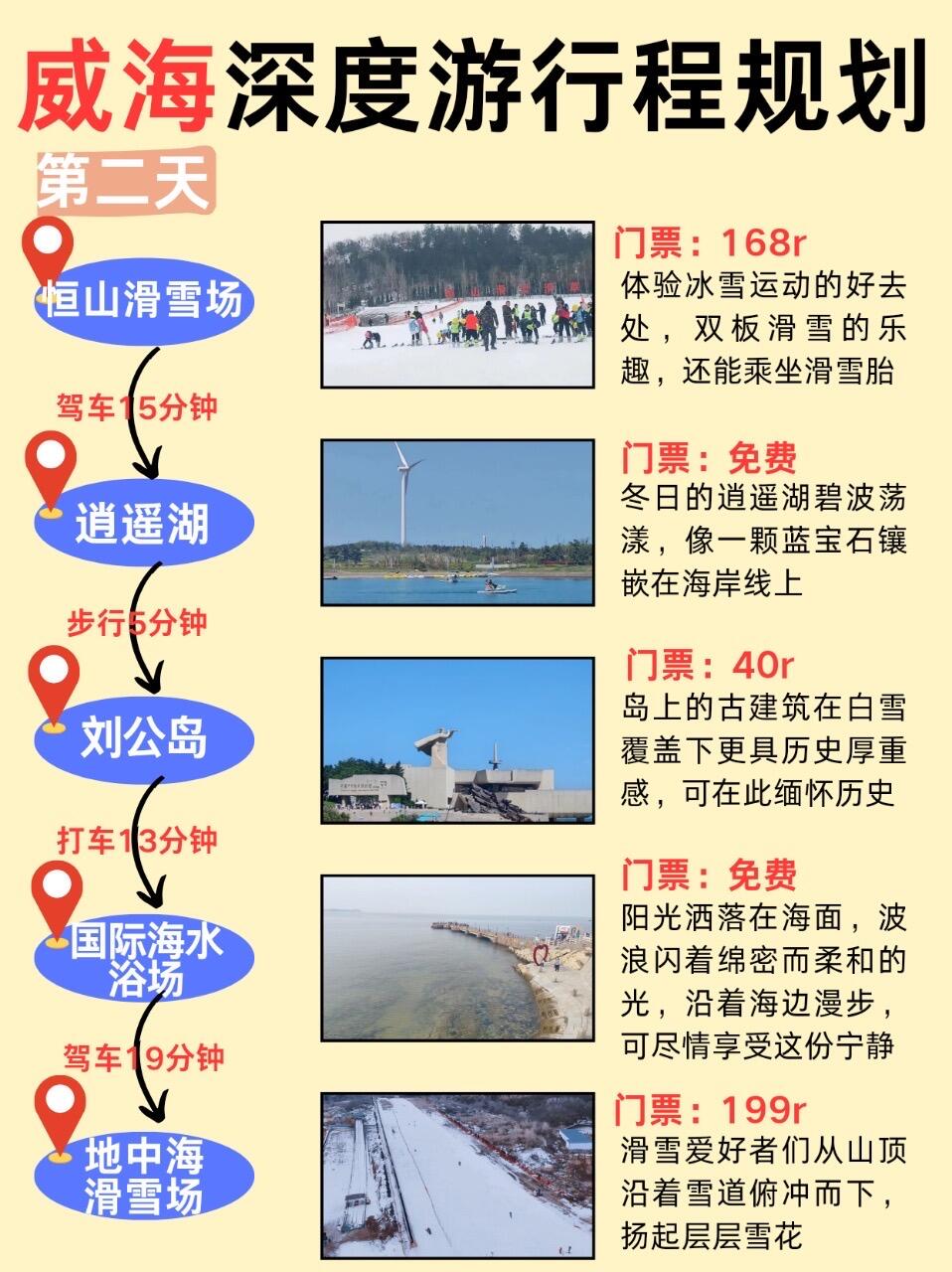 - 刘公岛:雪中的海岛自带静谧感,逛甲午战争博物馆,看雪落在古炮上,历史感与冬日美景碰撞- 那香海:人少景纯!绵长的海岸线被白雪覆盖,海浪卷着雪花,仿佛闯进童话世界,适合静静发呆🌊