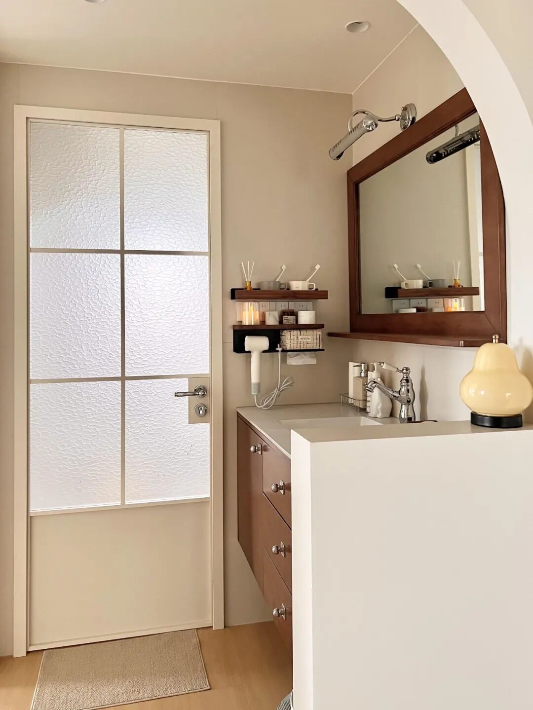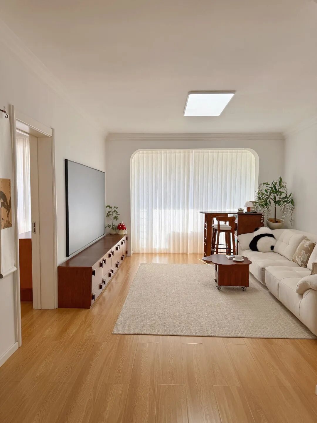 全屋通刷珍珠白乳胶漆,暖白色,不会显得清冷,反而自带一层柔光滤镜,温柔又治愈。