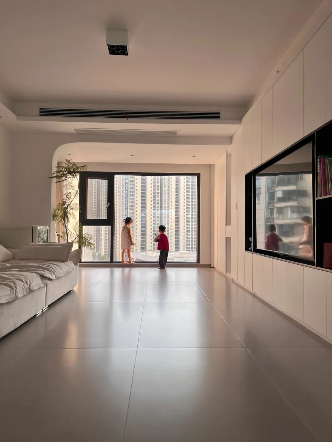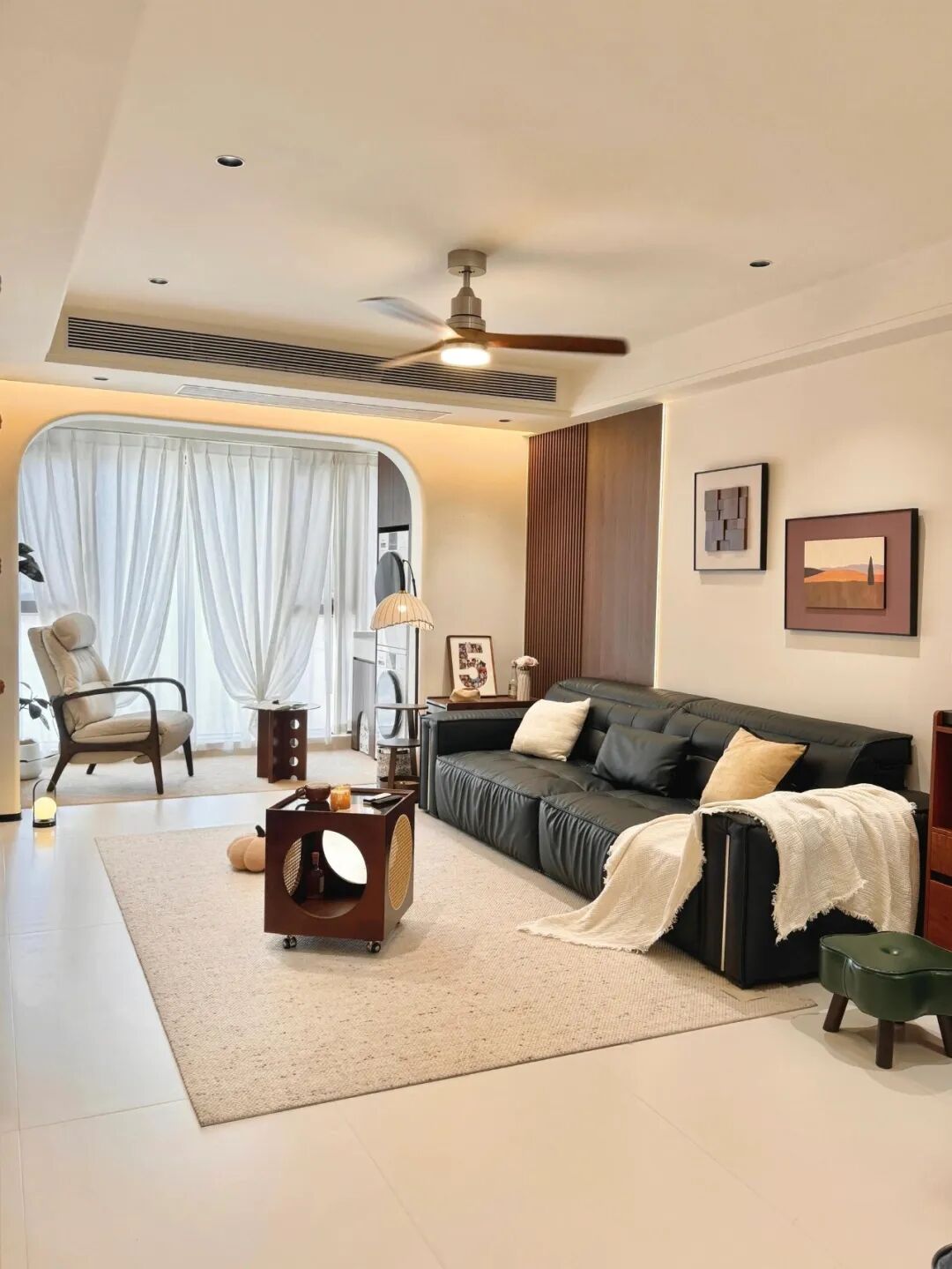 浅色硬装是背景画布,大白墙、浅地砖,干净、克制,能让整个空间显得通透又宽敞。