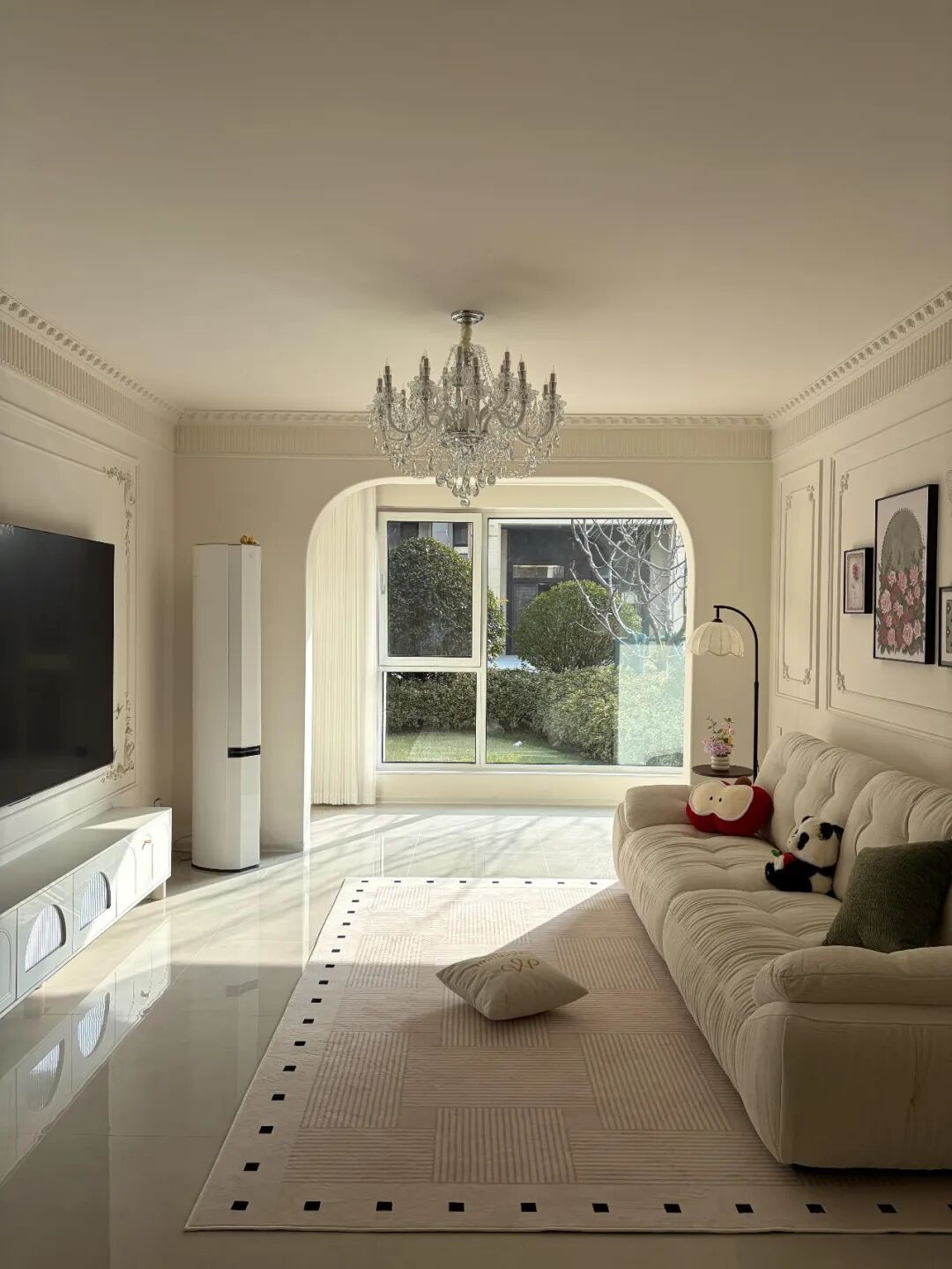 网友@二胖 家全屋几乎没做吊顶,就贴了两圈法式石膏线,家精致显大。