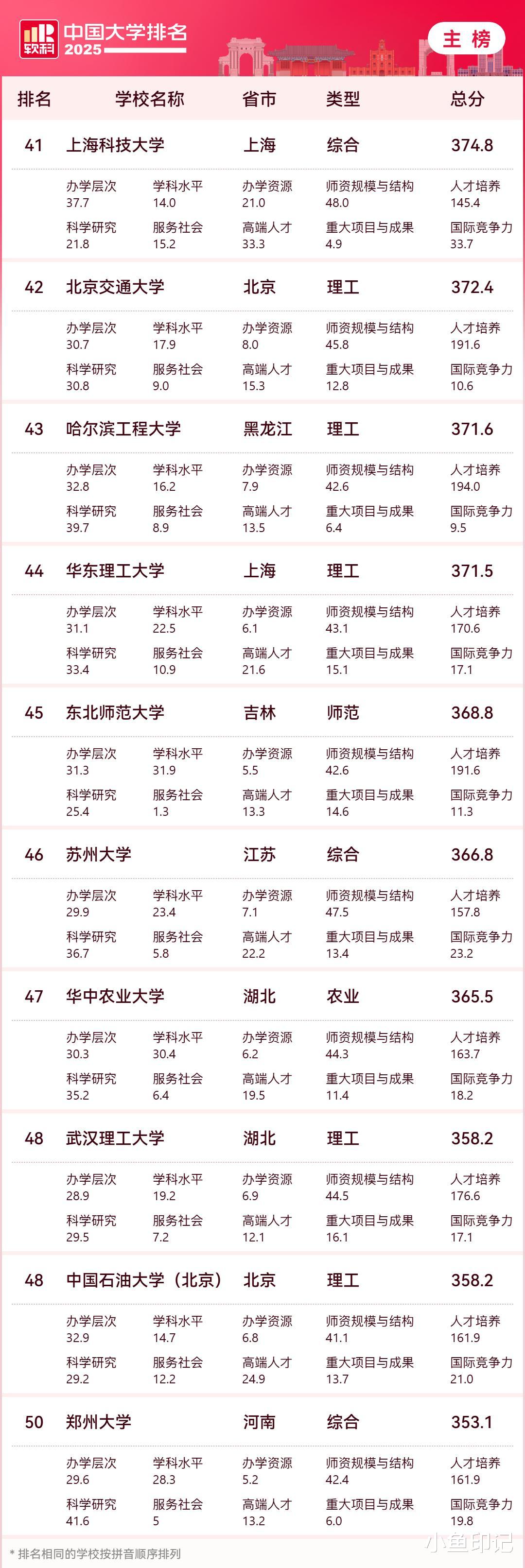 这相比于2024年排名,北航由第12名进步到第11名,哈工大由16名进步到14名,东南大学由第13名退步到第16名,其余高校整体变化幅度不大。