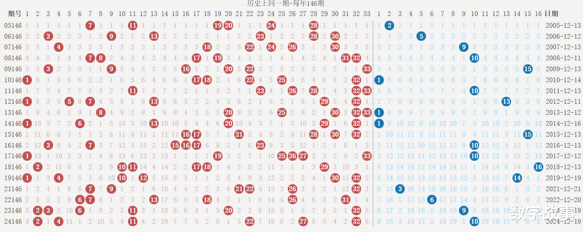 博弈心理,挑战概率: 看近期开奖号码,也可看历史数据统计!【双色球25146期多角度冷热号】双色球25146期四维走势图,红蓝号统计及冷热号1) 历史同一天: 12月18日 (共10期)