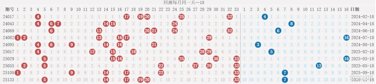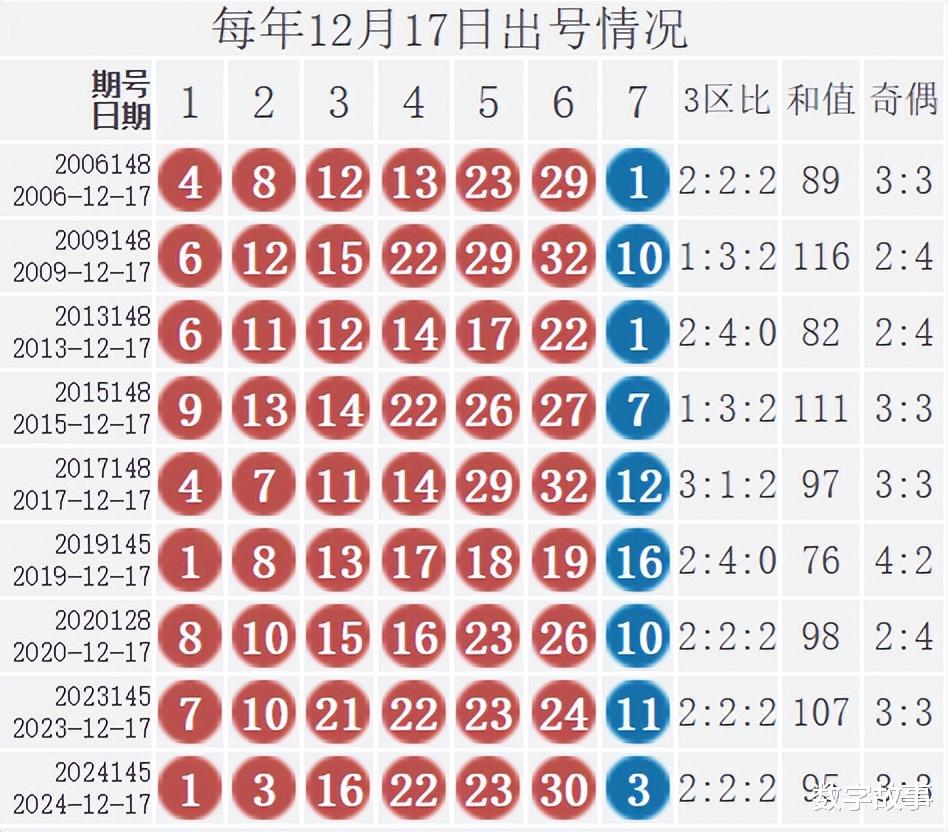 【其他历史数据查询统计】双色球历史上的今天2025-12-17 星期三 双色球不开奖每年12月17日出号情况: