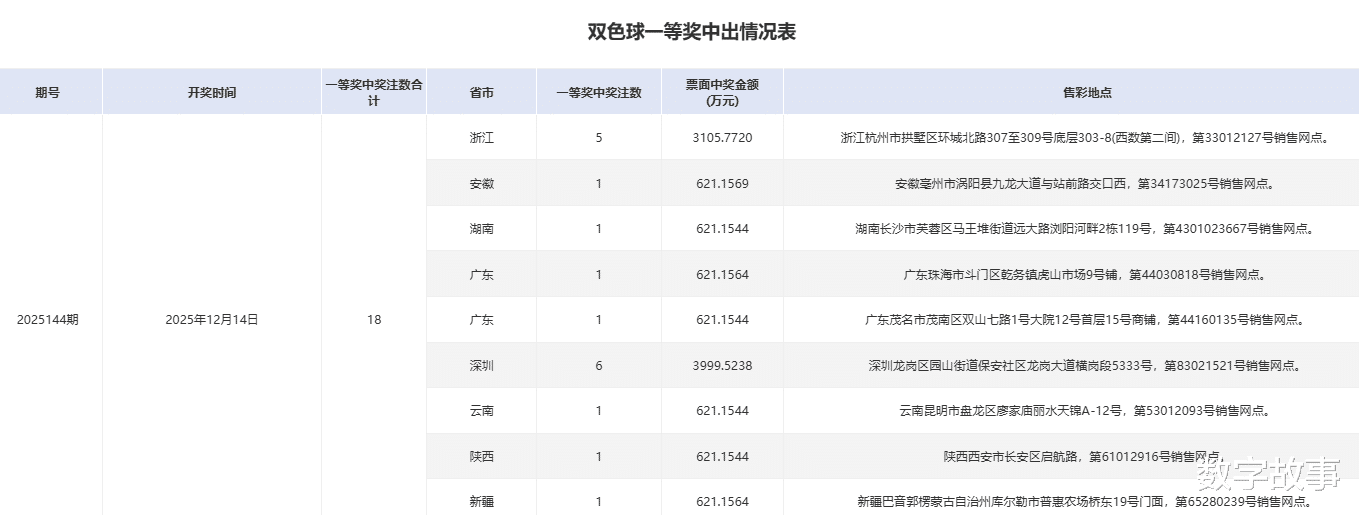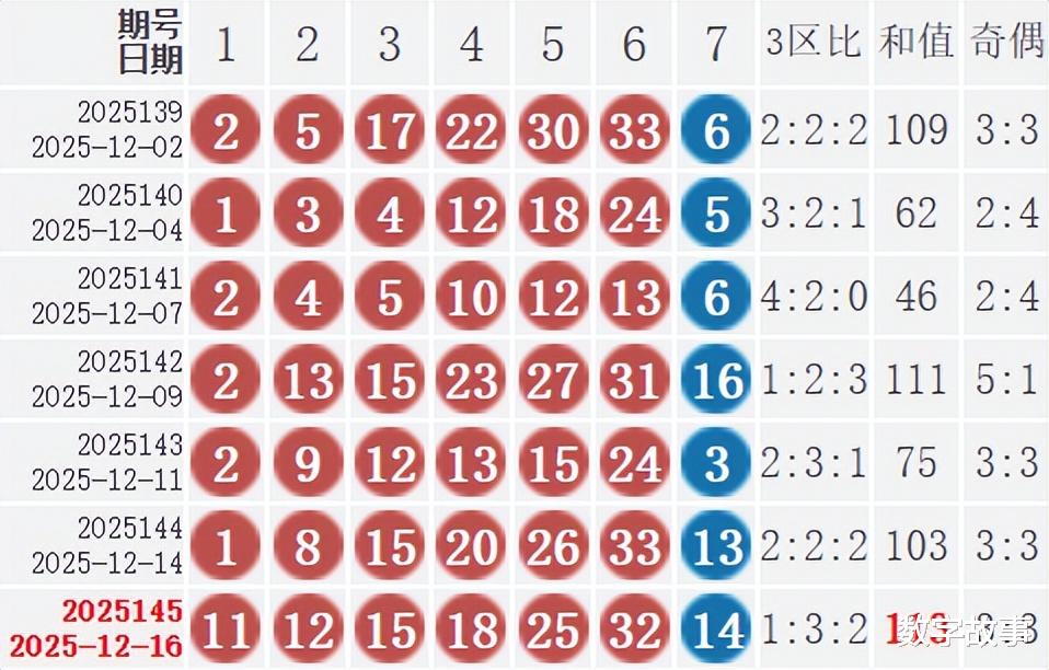 双色球25145期开奖结果及中奖情况:出奖时间: 2025-12-16 星期二 红球: 11-12-15-18-25-32蓝球: 14双色球红球重号叠码:15红球隔期下落:12, 15红球奇偶比:3:3红球和值:113红球跨度:21 三区比:1:3:2连号: 11-12