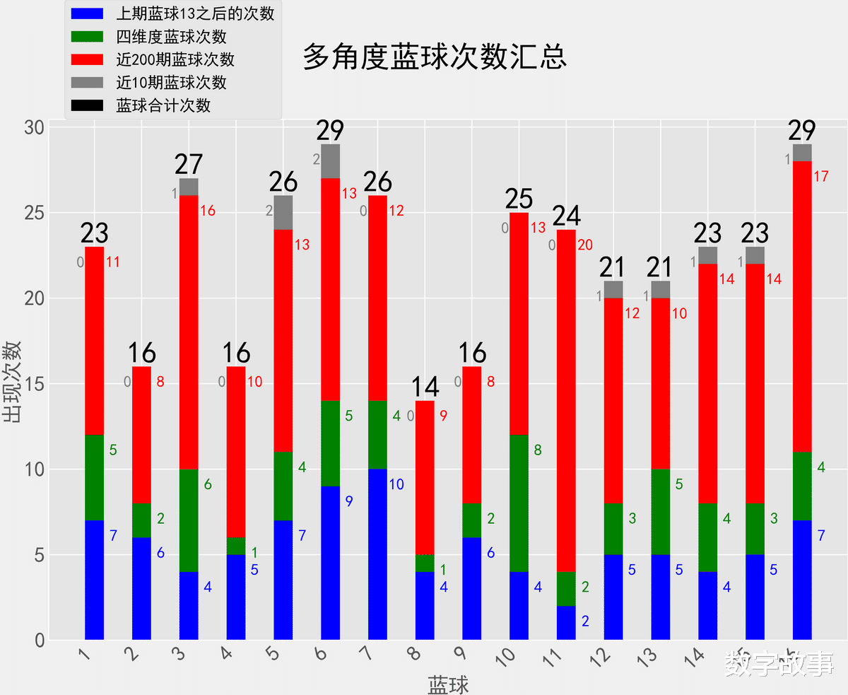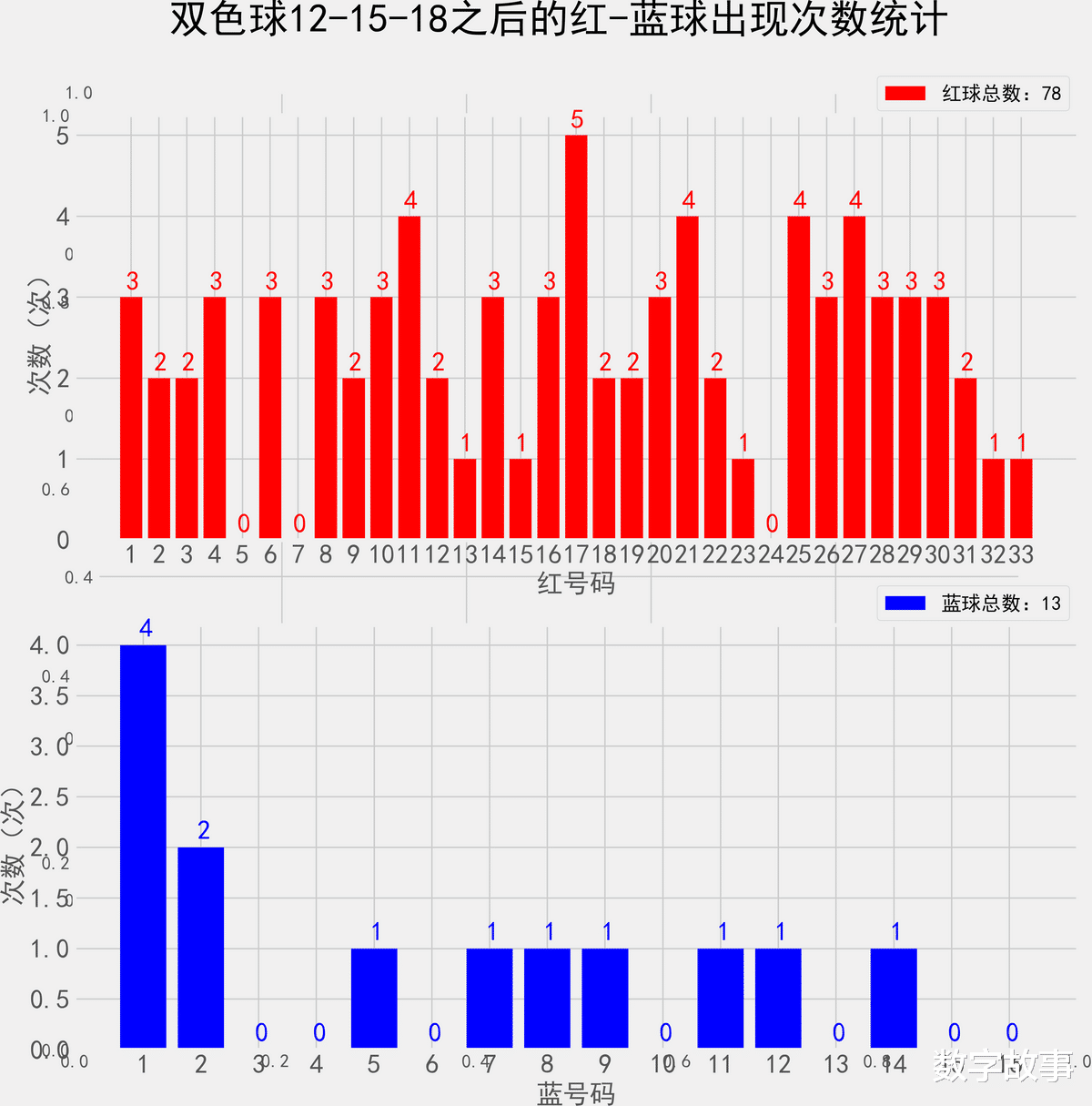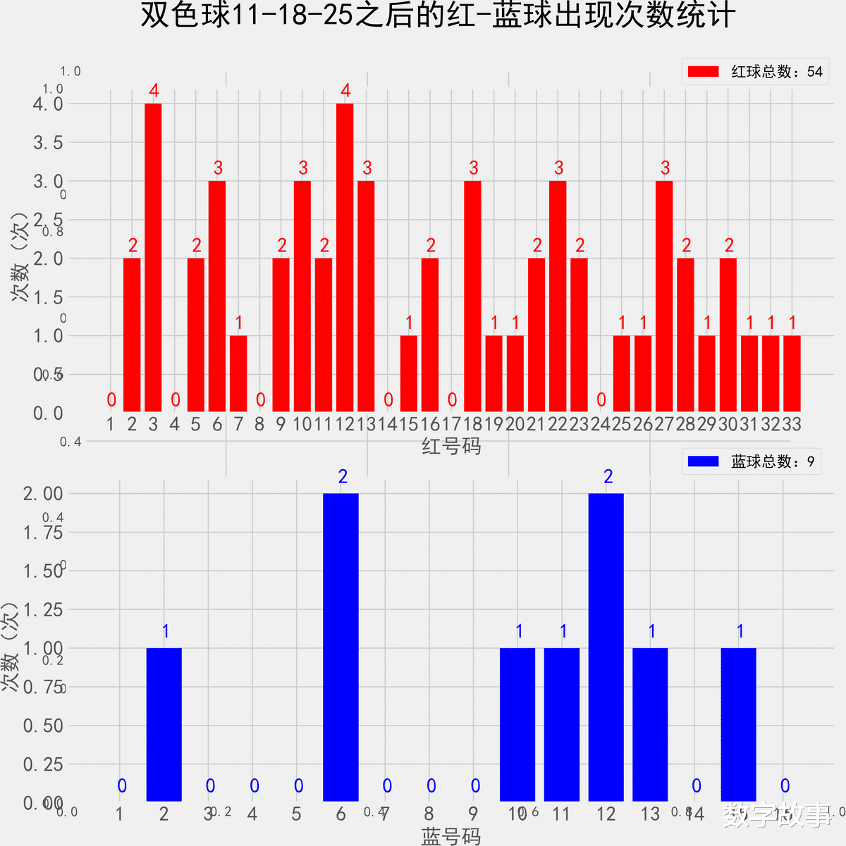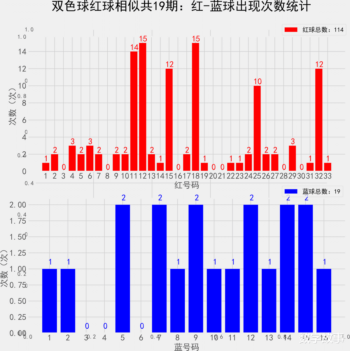 双色球近10期红蓝号统计情况统计样本数据: 60个红球 10个蓝球