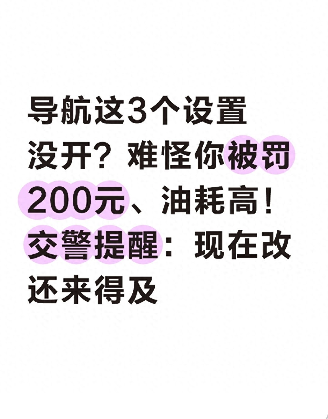 和小李一样,90%的车主只用导航“指路”,却忽略了能帮你避罚单、省油耗、保安全的核心设置。一线交警透露:去年全年的违章处罚里,近6成是“可防性违章”(比如超速、压实线、闯限行),只要开对导航设置就能提前规避;而那些抱怨油耗高的车主,80%都没用到导航的“省油路线”功能,白白多花了油钱。