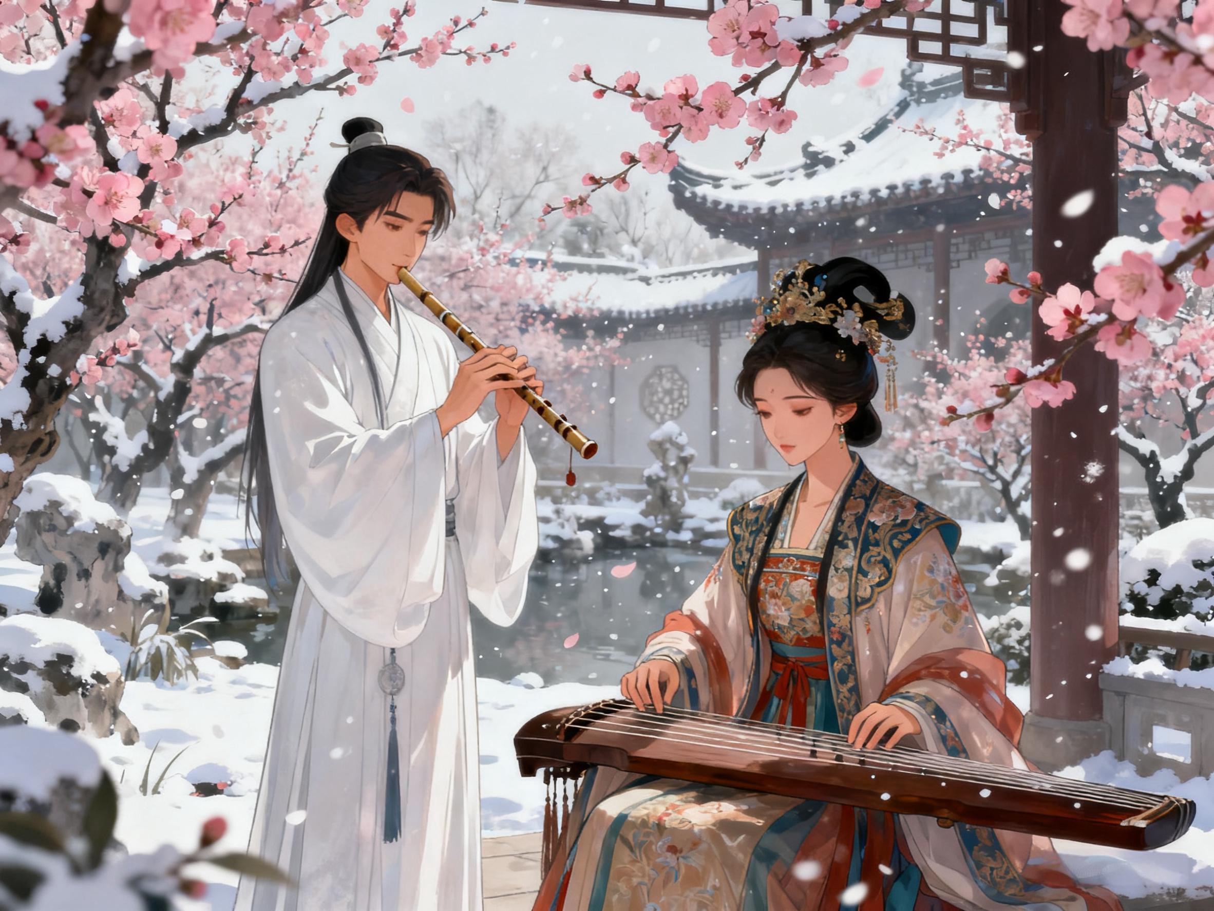 风在我耳边呼啸,雪花在我眼前飞舞。我看到顾言疯了一般冲到城墙边,伸出手想要抓住我。他的眼中满是绝望和痛苦,他的嘶吼声穿透了风雪,穿透了时空。"晚晚 ——!"我对着他,露出了最后一个笑容。然后,我就像一朵凋零的红梅,在漫天飞雪中划出一道凄美的弧线。意识消失的最后一刻,我仿佛听到了箜篌琴弦断裂的声音。那是我最喜欢的乐器,也是顾言第一次为我演奏的乐器。如今,琴弦已断,就像我们的爱情一样,永远无法再奏响完整的乐章。雪,越下越大,仿佛要将这世间所有的悲伤都掩埋。而顾言站在城楼上,手中紧握着那枚碎裂的玉佩和从我的怀中掉落的断弦,泪水混合着血水,在他的脸上结成了冰。他知道,从这一刻起,他的世界已经崩塌。他将带着对我的思念,孤独地走完余生。许多年后,当清朝统一天下,当和平盛世终于到来的时候,人们经常会看到一个白衣男子,在紫禁城的废墟上吹着一支哀伤的笛子。他的笛声如泣如诉,仿佛在诉说着一个千年的悲伤故事。有人说,他是一个痴情的书生,在等待他心爱的姑娘。有人说,他是一个孤独的侠客,在缅怀逝去的时光。还有人说,他是一个悔恨的官员,在为自己的过错赎罪。但没有人知道,他曾经有过一个名字叫顾言,他曾经深爱过一个叫苏晚的姑娘,他曾经有过一段跨越生死的爱情。