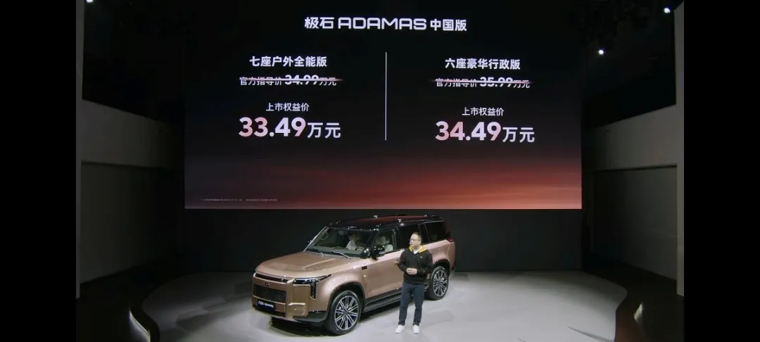 在中东市场取得阶段性成功后,极石ADAMAS正式在12月28日登陆中国市场,七座户外全能版/六座豪华行政版上市权益价分别为33.49/34.49万元。