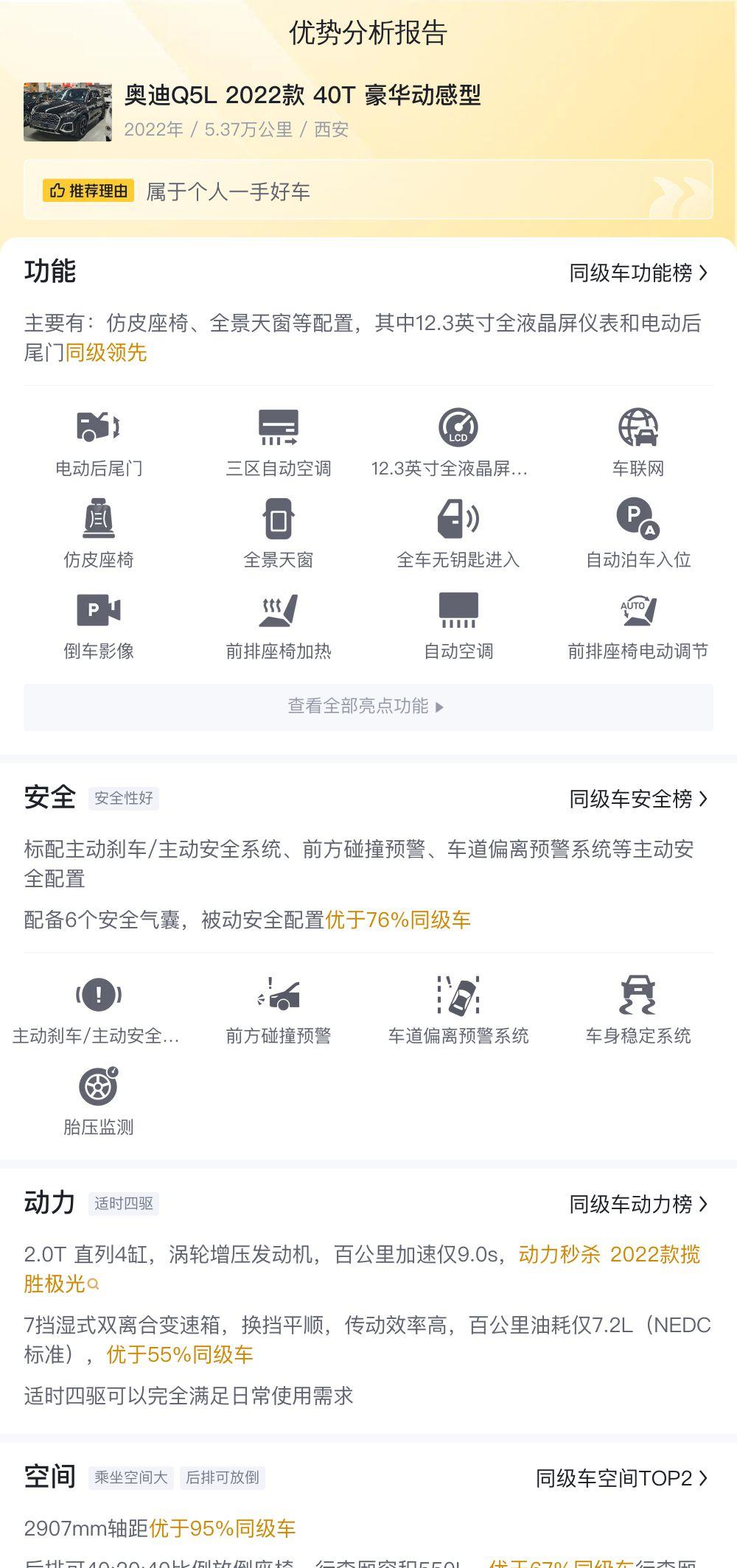 说了这么多,咱们来总结一下。 23.9万买一辆二手奥迪Q5L 2022款 40T豪华动感型,其实是一个有点冒险的选择。 它有着不错的配置、舒适的驾驶体验和宽敞的空间,这些都是它的优势。 但另一方面,二手车的潜在风险和较高的使用成本,也是需要我们认真权衡的因素。