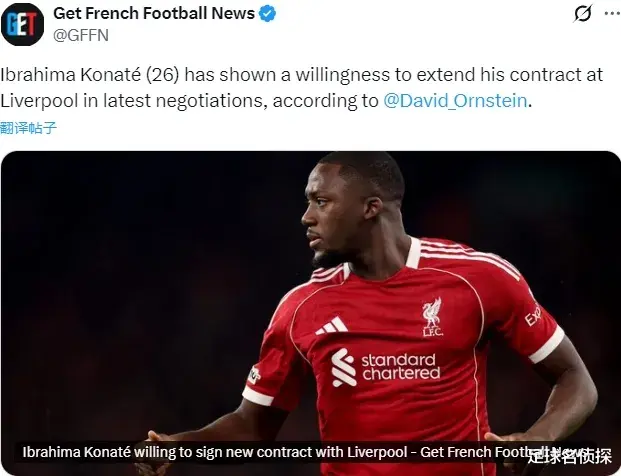 TA记者DO消息,科纳特愿意和利物浦续约,这名26岁中卫当下的合同即将到期,而相关谈判正在进行中。