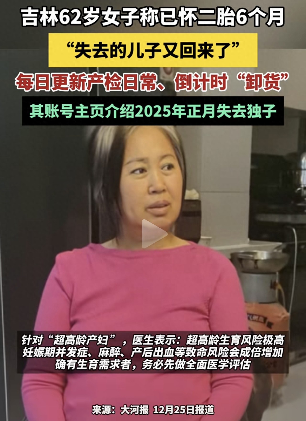 这不是普通的孩子,这是我失去的儿子又回来了!2025年12月下旬,吉林一位62岁的失独母亲,在社交平台上晒出自己的产检视频,官宣已怀孕6个月,视频里,她轻抚孕肚,眼神里满是失而复得的欣喜,这番话更是戳中了无数网友的泪点。
