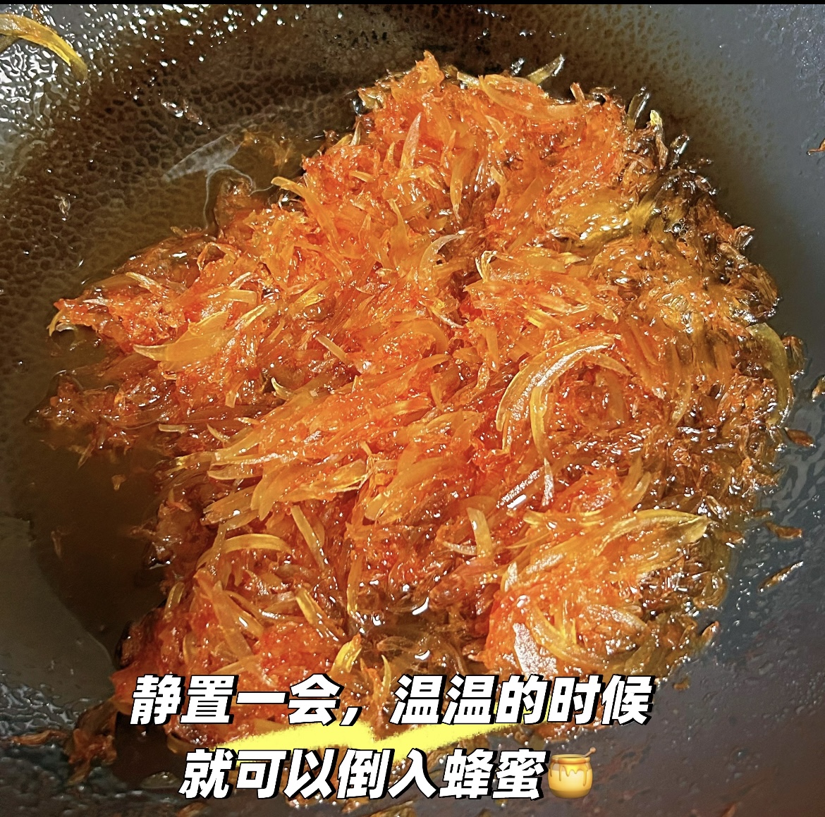 此时,加入剥好的柚子果肉,继续小火熬煮,并用勺子不断搅拌,防止粘锅。随着熬煮的进行,柚子的香气会越来越浓郁,汤汁也会越来越浓稠。当汤汁收至理想的浓稠度时,关火,让其自然冷却至温热状态。注意,一定要等柚子茶冷却后再加入蜂蜜,因为高温会破坏蜂蜜的营养成分和风味。