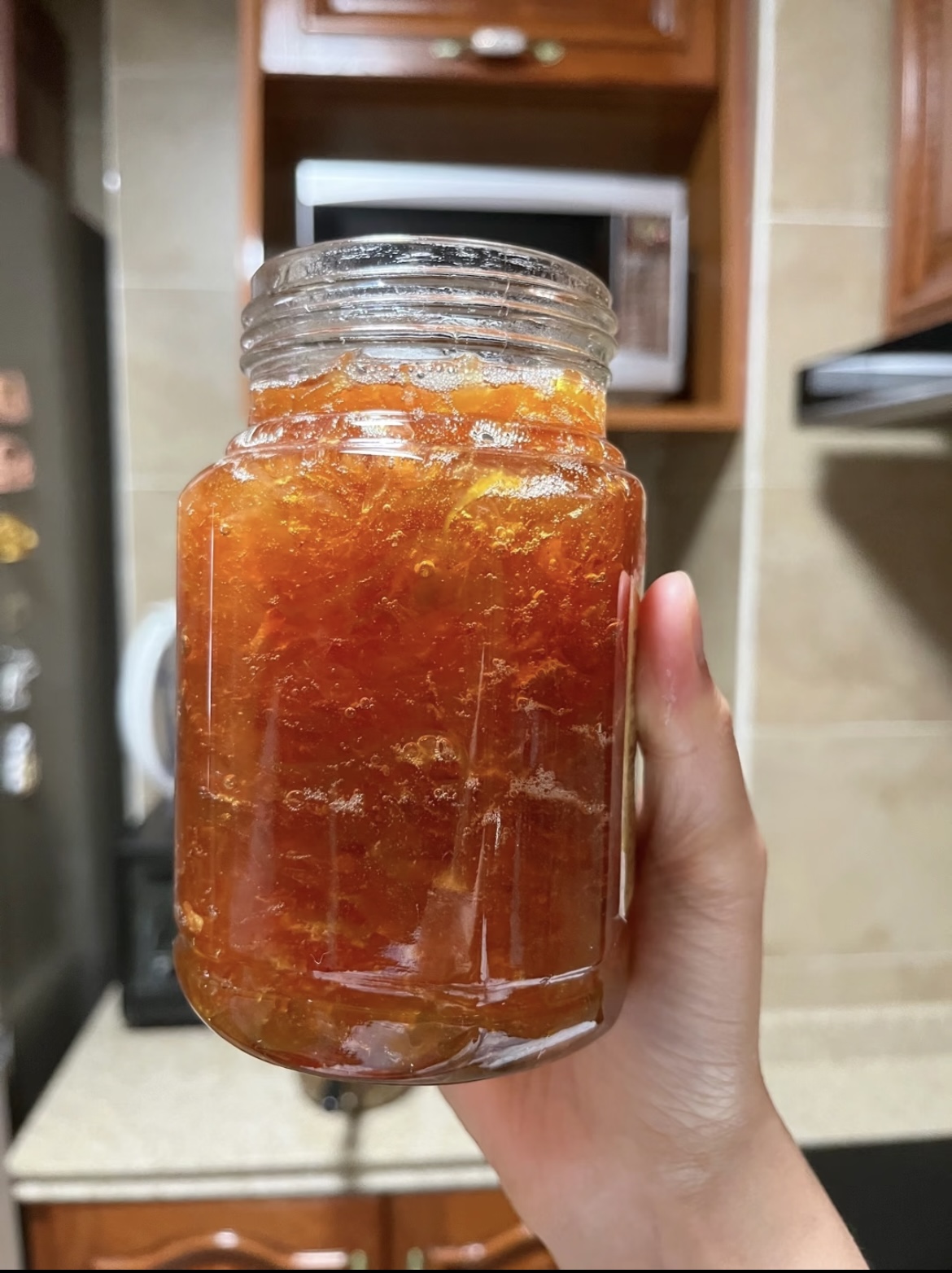 最后,将熬好的柚子茶装入干净、无油、无水的玻璃瓶中,加入蜂蜜,搅拌均匀,密封保存。放置一段时间后,待其充分融合,风味更佳。饮用时,取适量柚子茶,用温水冲泡即可。一杯自制的蜂蜜柚子茶,不仅口感醇厚,酸甜适中,而且充满了家的温暖和心意。