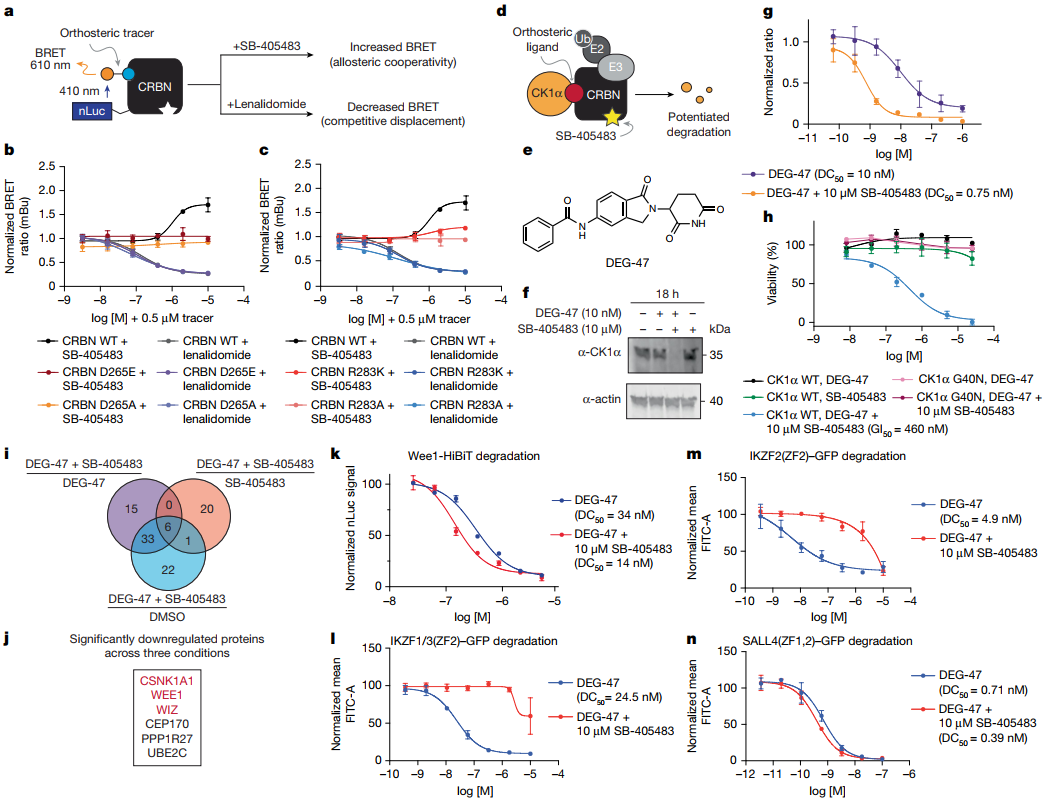 近日,哈佛大学与GSK研究团队首次发现了CRBN 上一个进化上保守的隐蔽性变构结合位点,并找到了能精准结合该位点的小分子化合物SB-405483,同时揭示了其通过构象调节影响底物降解选择性的机制。