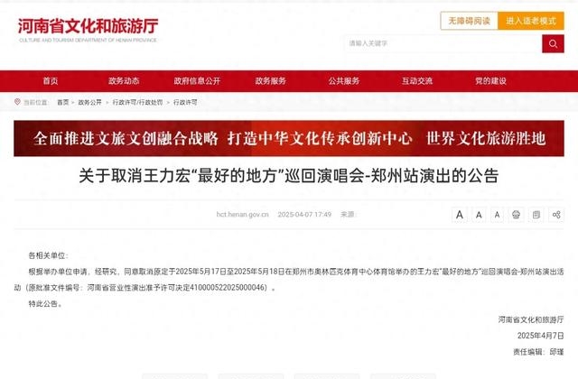 4 月 8 号那天,刷手机的人估计都瞧见 “王力宏演唱会郑州站取消” 上热搜了。这事挺突然的,3 月初河南省文旅厅官网刚公示了审批,说 5 月 17 号、18 号在郑州奥体中心办,举办方是武汉一家文化公司,参演的还有马来西亚、新加坡等地的艺人。这才过了一个月,咋说没就没了呢?好多等着去看演出的人都犯嘀咕,评论区里跟菜市场似的,全是问 “为啥取消” 的声音。