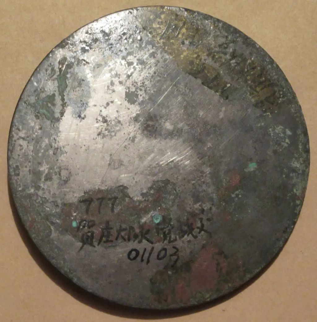 据何堂坤先生研究,新铸铜镜经镀锡并打光之后,正面应是光亮崭新的,背面为纹饰,不作映照,色泽灰白。但是,镜子在使用、保管过程中,与人体、空气接触频繁,镜面上的锡容易被氧化,镀层会受到腐蚀使得镜面变黑。东汉徐幹诗作《室思》其三“自君之出矣,明镜暗不治”,说的就是镜面氧化腐蚀的现象。