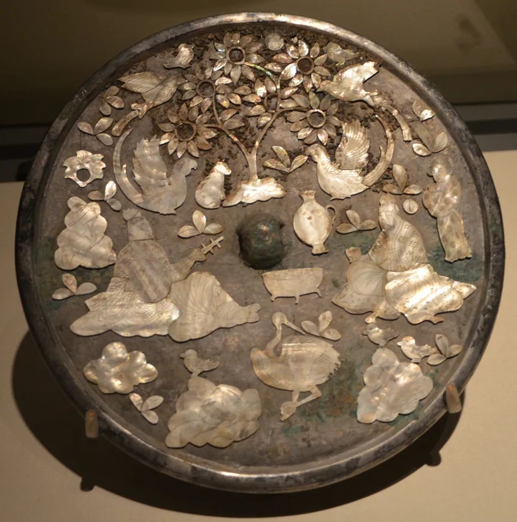 ▲图3-1 国博“古代中国”基本陈列展出唐代螺钿高士宴乐镜(霍宏伟摄影)