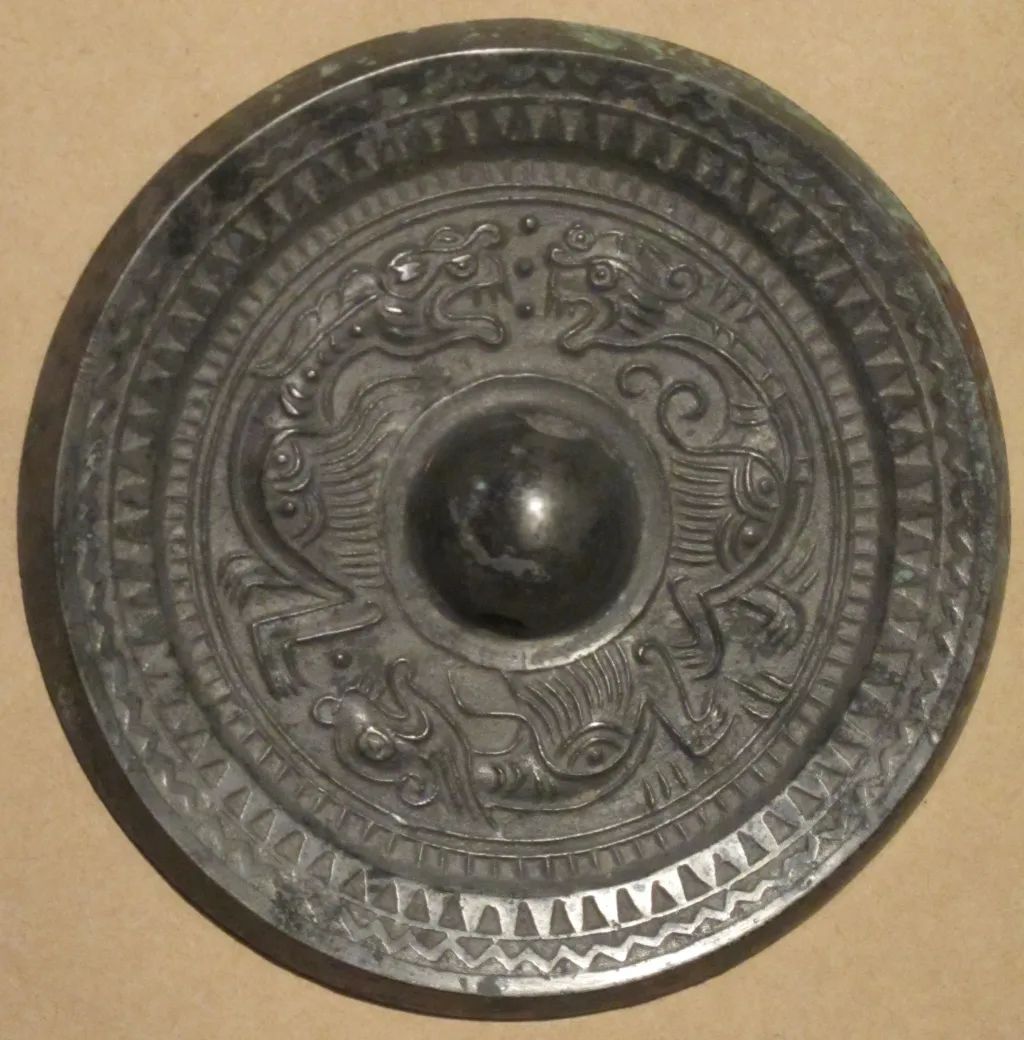 ▲图2-1 洛阳市文物考古研究院藏西晋龙虎镜背面(霍宏伟摄影)