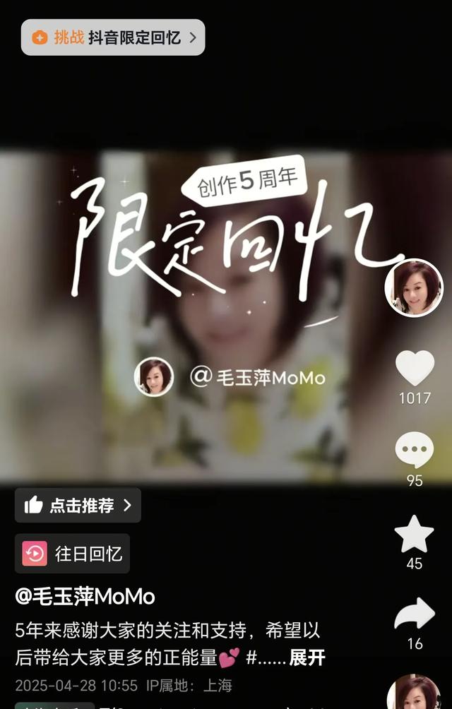 毛玉萍同样也有短视频账号,临近五一时,她发了一条视频,是回忆曾经的过往。