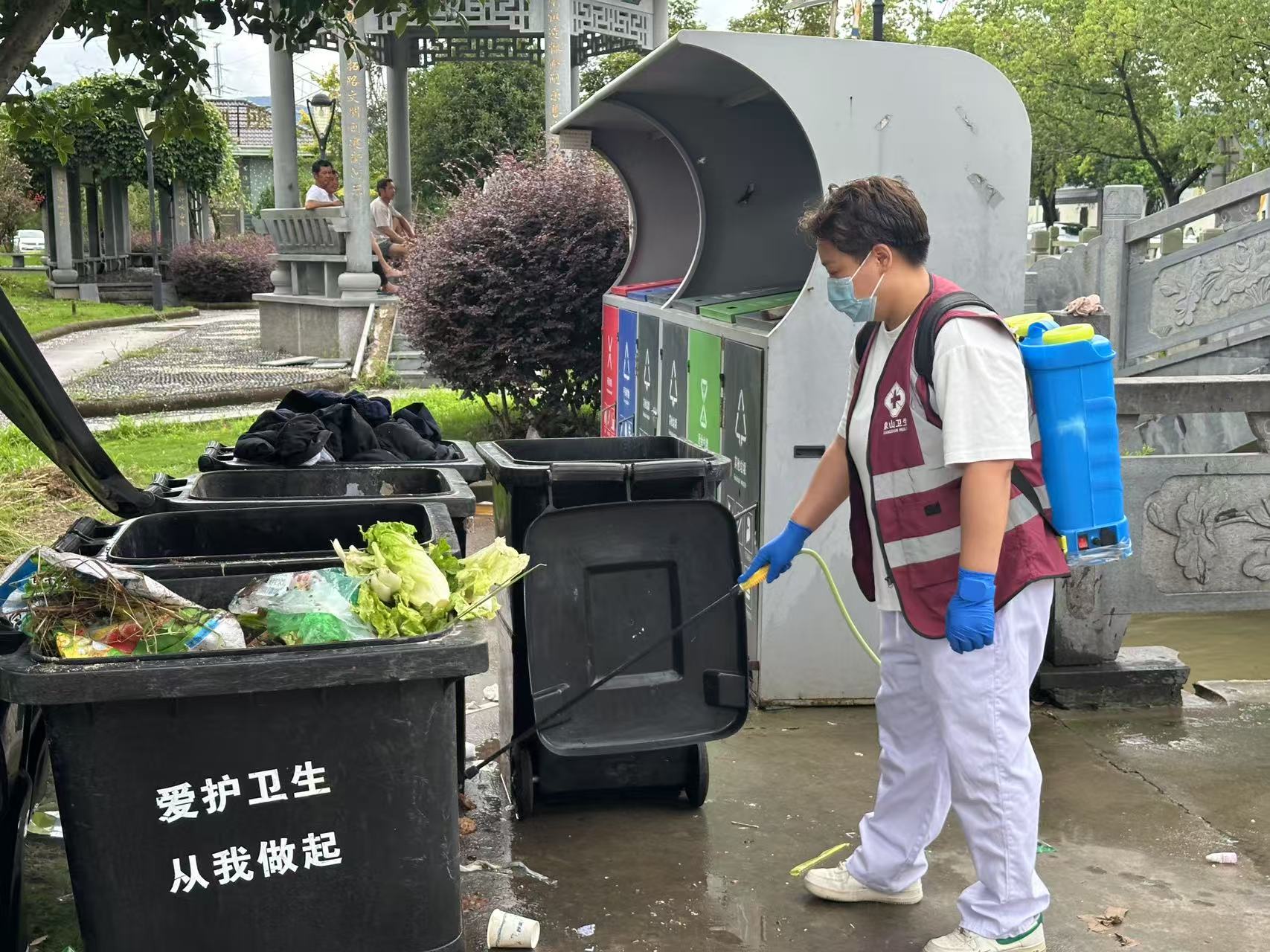 在对内涝严重的居民区、垃圾堆放点等重点场所进行全面消杀之余,消杀队伍不忘敲门入户发放灾后防疫手册,现场指导居民做好饮用水消毒、环境清理等工作。针对独居老人、残疾人、慢性病患者等特殊群体,还同步提供血压监测、伤口处理等延伸服务,确保防疫工作全覆盖、无死角。