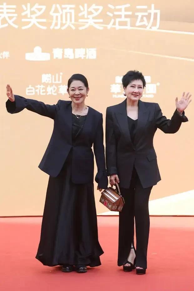 老一代演员也是悉数到场,倪萍和张凯丽两个人一同出席,同样是黑色的服装,可是风格完全不同。