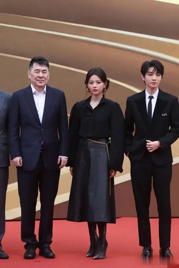 陈建斌携王俊凯也是为电影来做宣传,同样都是黑色礼服,陈建斌穿的就比较随意一些了,像是老干部到场讲话,而王俊凯就像贵公子一样,不过搞笑的是,妞站在他俩中间,感觉不高兴哦~