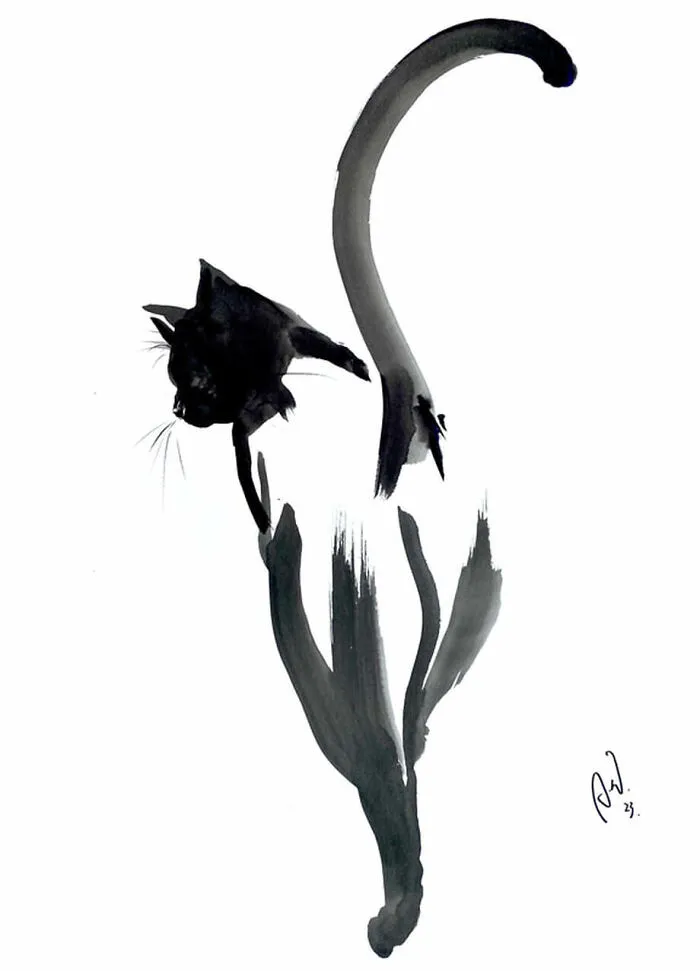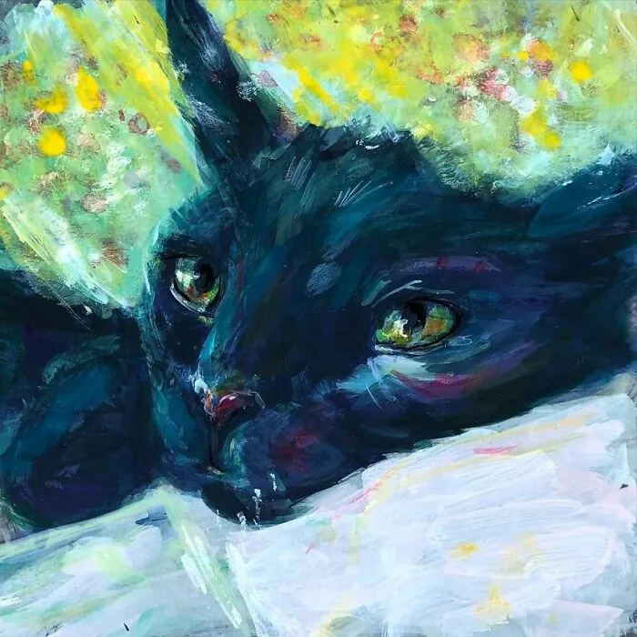 她说:“当时我想让自己重新开始,别再画之前那种线条感浓的女性肖像了,那是我的旧风格,我太累了。我就想——为什么不试试画猫呢?反正我要养第二只猫了,换个题材、换种心情。”