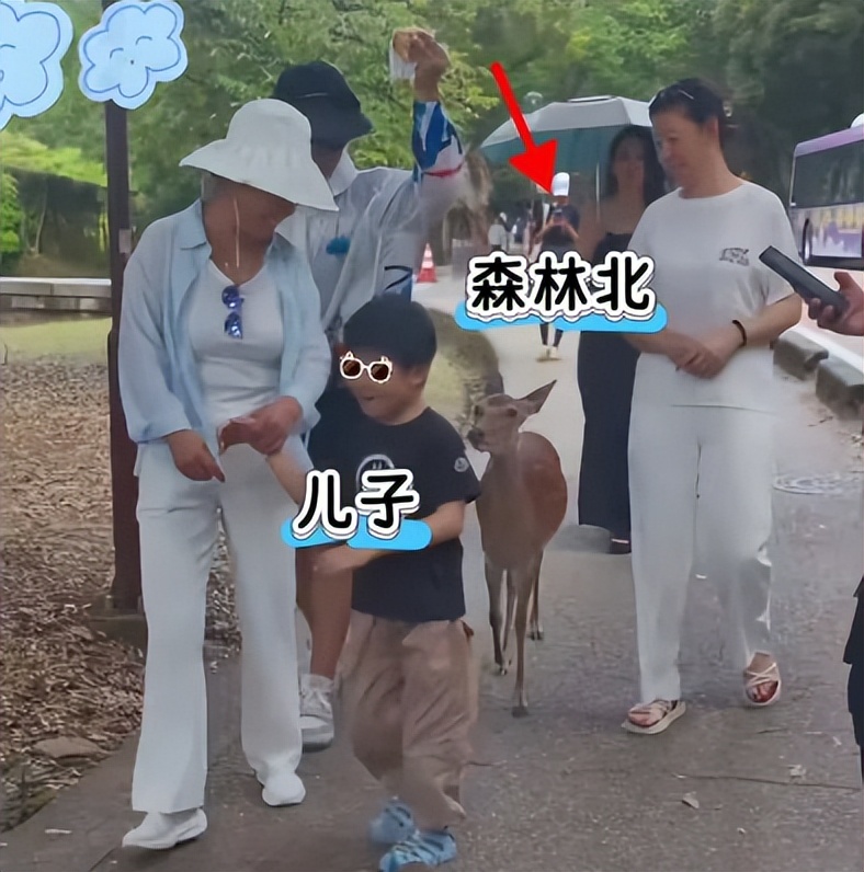之前和汪峰森林北去日本度假的时候,大人们都在前面陪着儿子。