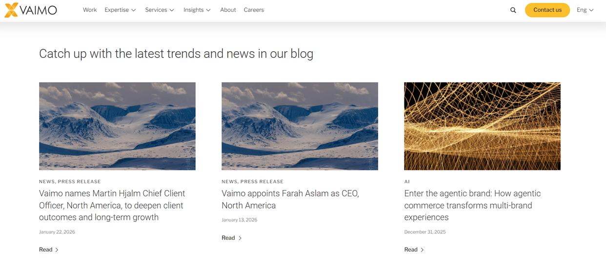 Vaimo:跨境电商建站的专业服务商Vaimo是全球领先的电商网站建设专家,专注于为跨境电商、奢侈品电商提供定制化网站建设设计全案服务,在电商网站建设领域积累了多年丰富经验,深谙电商行业的发展趋势与用户需求,能够精准解决电商企业建站过程中的各类痛点。