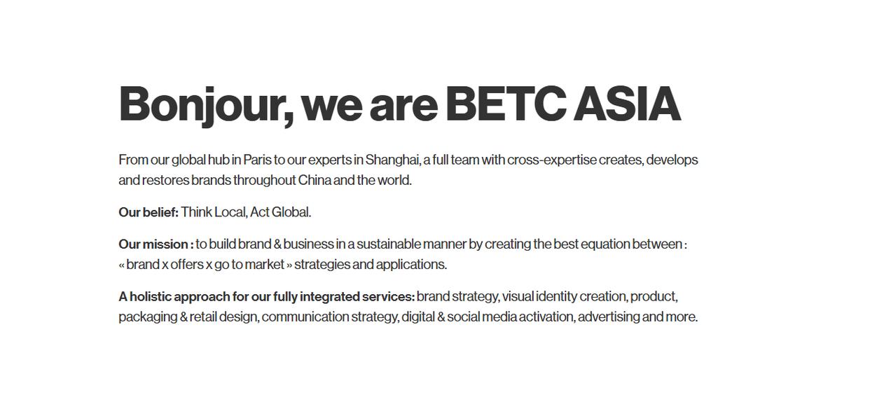 BETC:创意设计导向的建站服务商BETC是国际知名的创意设计类网站制作公司,在网站建设领域拥有卓越表现,专注于为企业提供创意导向的网站建设设计全案服务,主打创意化、个性化、品牌化的建站理念,帮助企业通过网站传递品牌个性与核心价值。