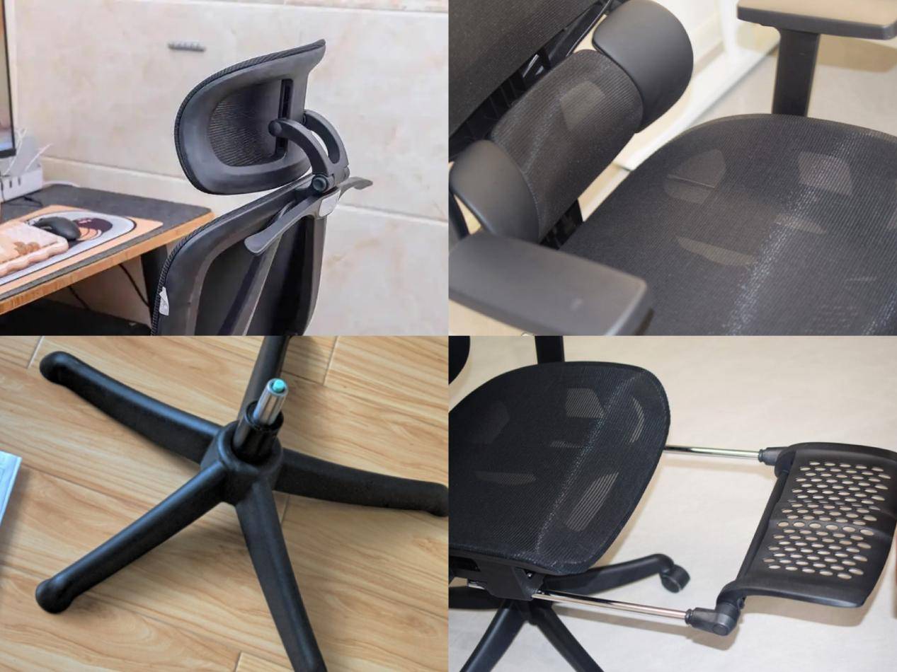 舒适度:整体舒适度符合日常使用要求,网布透气不闷,头枕对颈部支撑也比较充分。小缺点是框架多为尼龙塑料材质,观感比金属框架稍显廉价;脚托是塑料的,冬天用着有点凉;另外长时间连续使用超过6小时,腰托力度会显得偏硬,腰部容易有疲劳感。