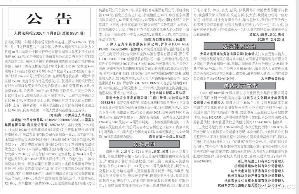 巧合的是,就在1月8日,《人民法院报》刚刚刊登了海底捞“小便门”事件当事人唐某及其父母的致歉声明。