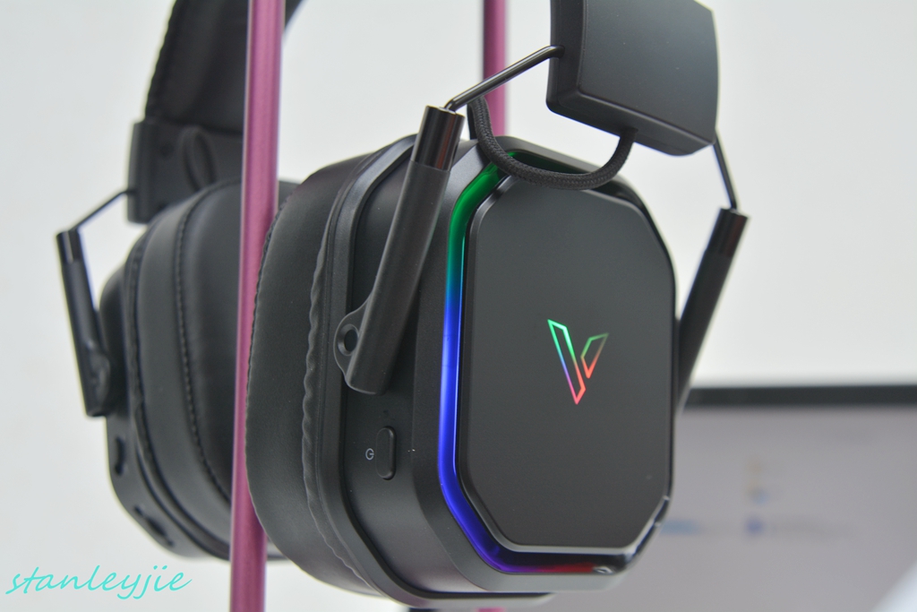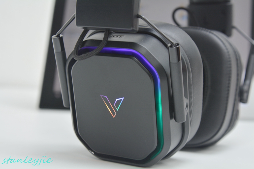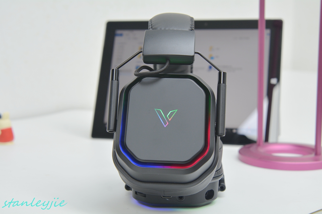 2.背光。耳机在无线状态下有RGB背光,背光可通过左耳罩下的开关可以自由关闭;有线模式下则没有背光。