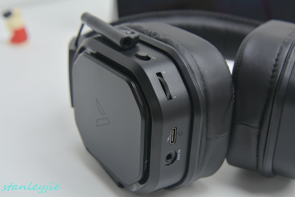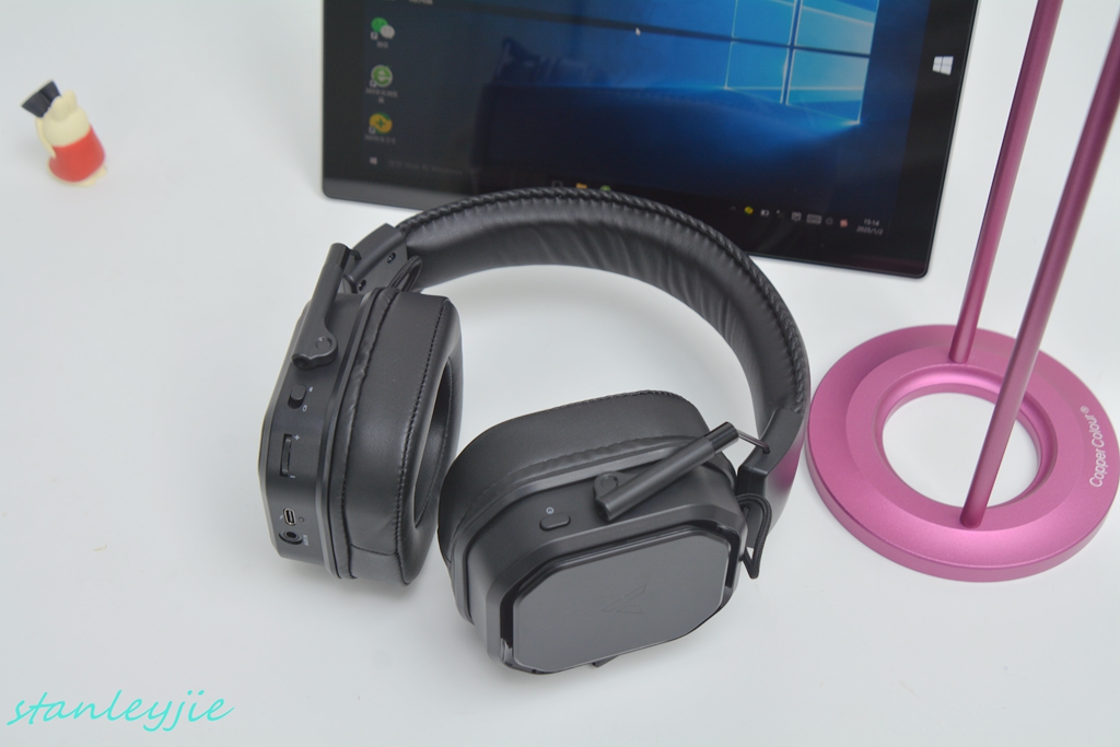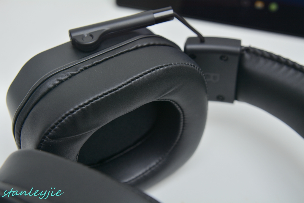 8.操纵控制。大部分开关集成在左耳罩下方,游戏中可以方便的单手盲操,背光、麦克风均带有开关,可以自由关闭。