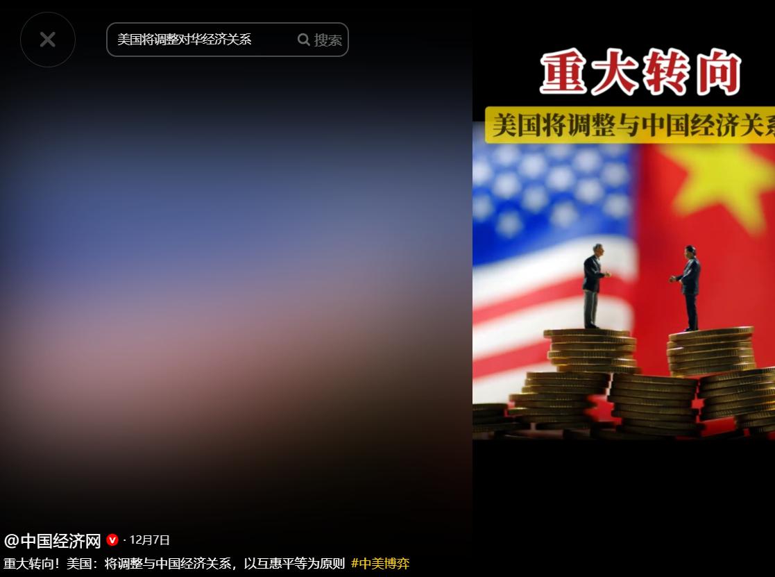 即美国不再将日益崛起的中国视作头号竞争对手,而是开始将其视作一个近乎对等,且可以发展友好互助经济关系的国家。
