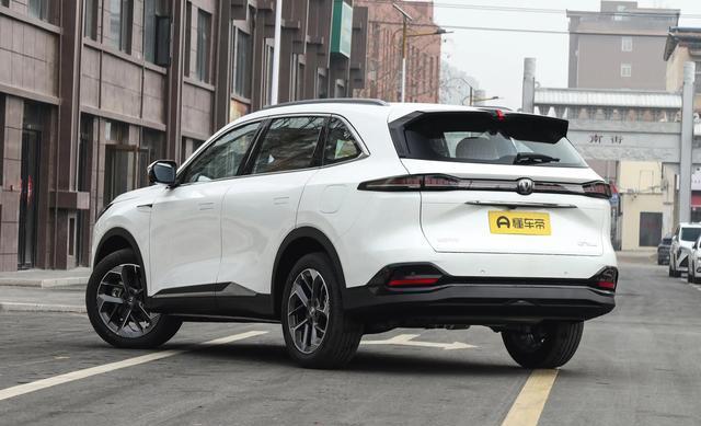 第四代CS75 PLUS的前脸设计颇具特色,贯穿式的灯带与大尺寸V形格栅相结合,让人一眼就能认出。车身侧面采用了隐藏式门把手和黑色轮眉,提升了整体质感。车尾部分同样采用贯穿式尾灯,与前脸相呼应,增强了视觉统一性。这些设计元素共同打造出极具辨识度的外观造型。