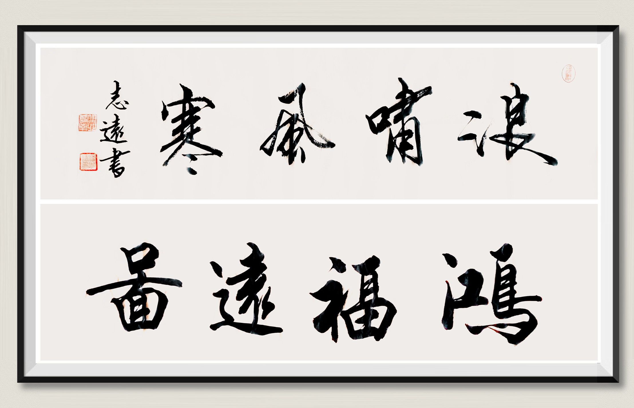 山虽然雄浑,却可以丈量,河虽然浩渺,也有长度,书法之路尽管艰难,但漂亮字还是有标准的。好书法总能让人耳目一新,而作为评论工作者,评论标准是恒定的,好就是好,不好就是不好,不管传统,还是创新。传统者如果写得好,笔者欣赏、推崇,创新者如果写得好,笔者也会激赏、赞扬,而“朝学执笔,暮已大家”者,笔者则敬而远之。看潘志远的书法,不管从传统法度方面,还是从创造面貌方面,他都下过很大功夫,也都凝聚着他的心力、才情,所以笔者更应该为其写评,而且心甘情愿,心情舒畅。