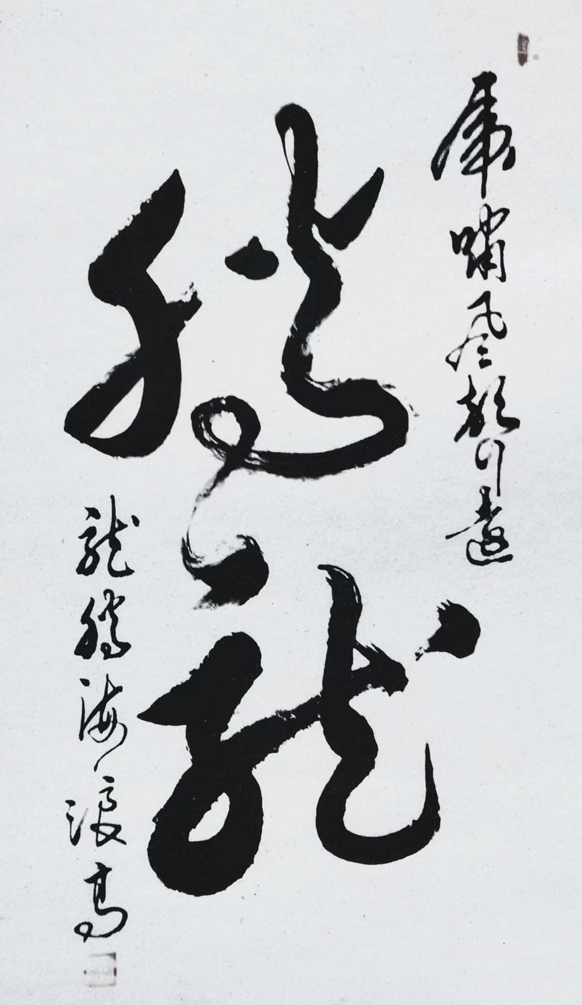 也许潘志远系统临摹过郭沫若的字,也许潘志远压根儿都不喜欢郭沫若,但对美的理解、对书法的感悟,无疑,高手是互通的,都有异曲同工之妙,然而,纵览两者书法的点画、线条、结构,却迥然有别。在此受篇幅所限,不赘述郭沫若的书法,仅以潘志远的点画、线条、结构,窥豹一斑,聊聊心得体会,以示深爱之情。