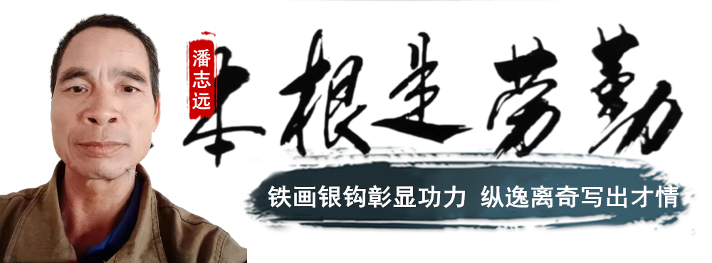 “铁画银钩”一词既俗,又雅,俗是因为大家都这样说,也就俗了,雅则是因书法的点画、线条确实如此形象、如此生动,但是,“铁画银钩”一词对笔者而言却有一段不能理解的障碍。记得多年前的某一段时间里,笔者总是对“铁画银钩”一词觉得云里雾里,似若理论家故弄玄虚,终有一天,听启功说:“很多书家对‘铁画银钩’都停留在文字上、停留在语言上,很难表现在书法上,我也做不到,郭老的行书能体会一些。”随后,笔者认真翻阅了郭沫若的行草书,蓦然发现其线条、点画确实如铁画、似银钩,才恍然大悟,并由此深爱郭沫若的书法。近些年,常常看到潘志远的书法,也常常想到那段过往。从潘志远的书法中看到了“铁画银钩”。
