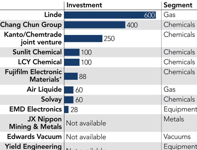 不过各种湿化学品如显影液等酸碱及有机溶剂、清洗溶剂,其特点是量大、价格低,以吨来计价,长途运输成本可能比价格还高,必须就近生产供应。