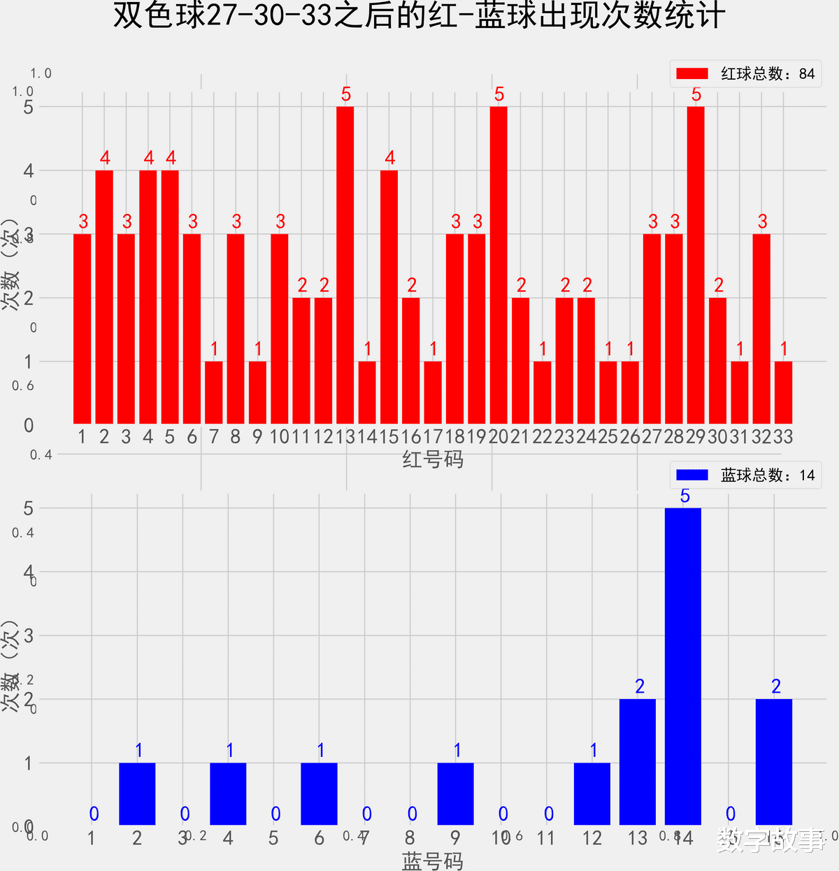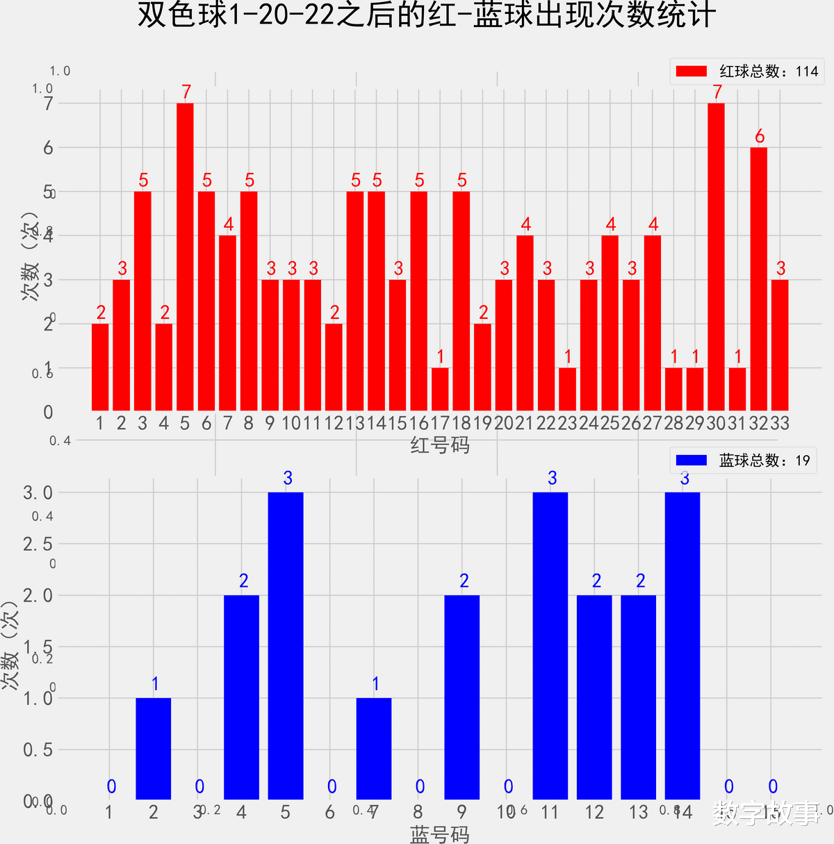 双色球近100期红蓝号统计情况统计样本数据: 600个红球 100个蓝球