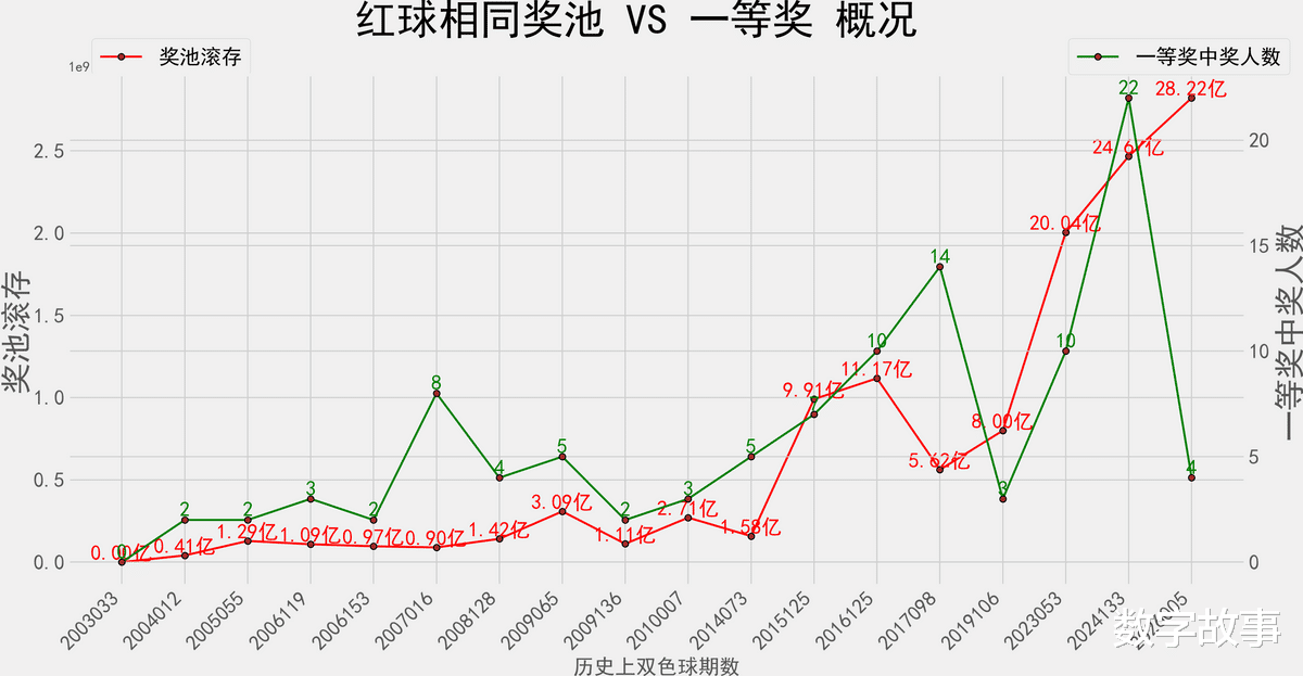 双色球26005期一等奖: 4注二等奖: 66注本期全国销售金额:387903486 元 奖池滚存:2821524165 元.近15期奖池滚存, 中奖情况等信息: