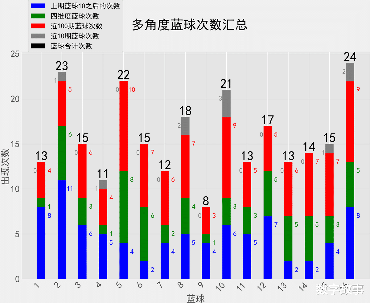 统计近1500期蓝号10之后, 各蓝球的出现次数双色球26005期蓝号是10找出近1500期蓝球10号之后, 下一期出现的所有蓝号,统计其出现次数。除开这一期,总共出现了83次10号球那么统计的样本数据是83个