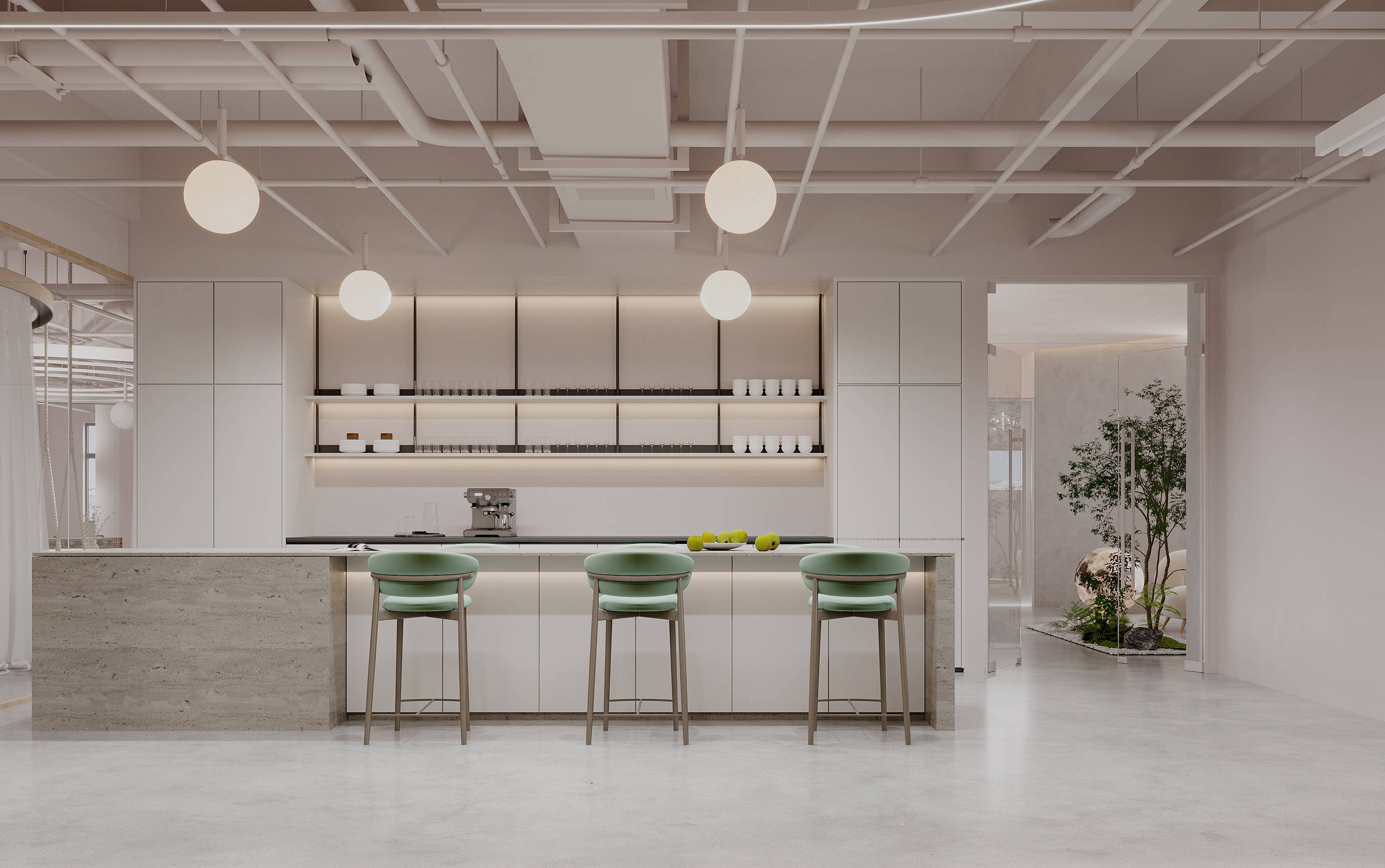 设计理念:艺术氛围的办公室,整体风格可以归纳为艺术漆和生态自然风的融合的暖色系办公空间。