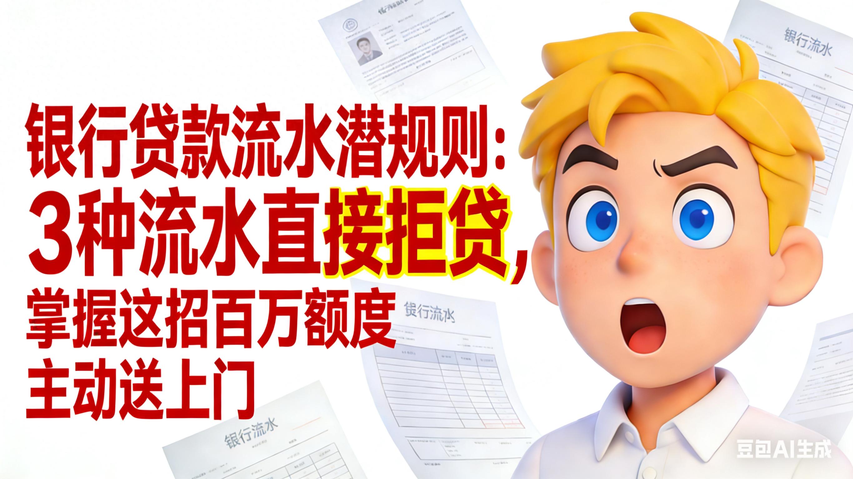 在贷款圈,有个扎心的现实:有人拿着流水自信满满去申请贷款,结果被银行秒拒,到最后都不知道自己输在哪。你是不是也以为有流水就等于拿到了贷款通行证?别傻了!今天就把银行藏着掖着的流水秘密扒个底朝天,教你一眼分清有效流水和无效流水,学会这招,百万贷款额度主动往你怀里钻!