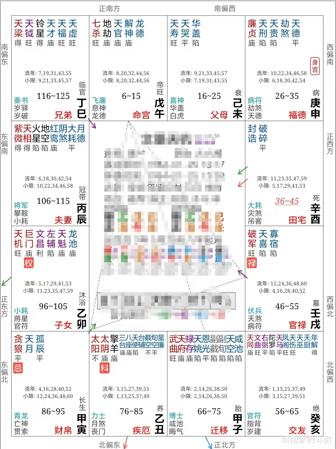 回到案例107这张命盘,其生年忌在财帛宫,一定不要解读成这辈子没有财,那是大错特错的。正确的解释应该是,这辈子有财,但不会很多,且赚钱辛苦。