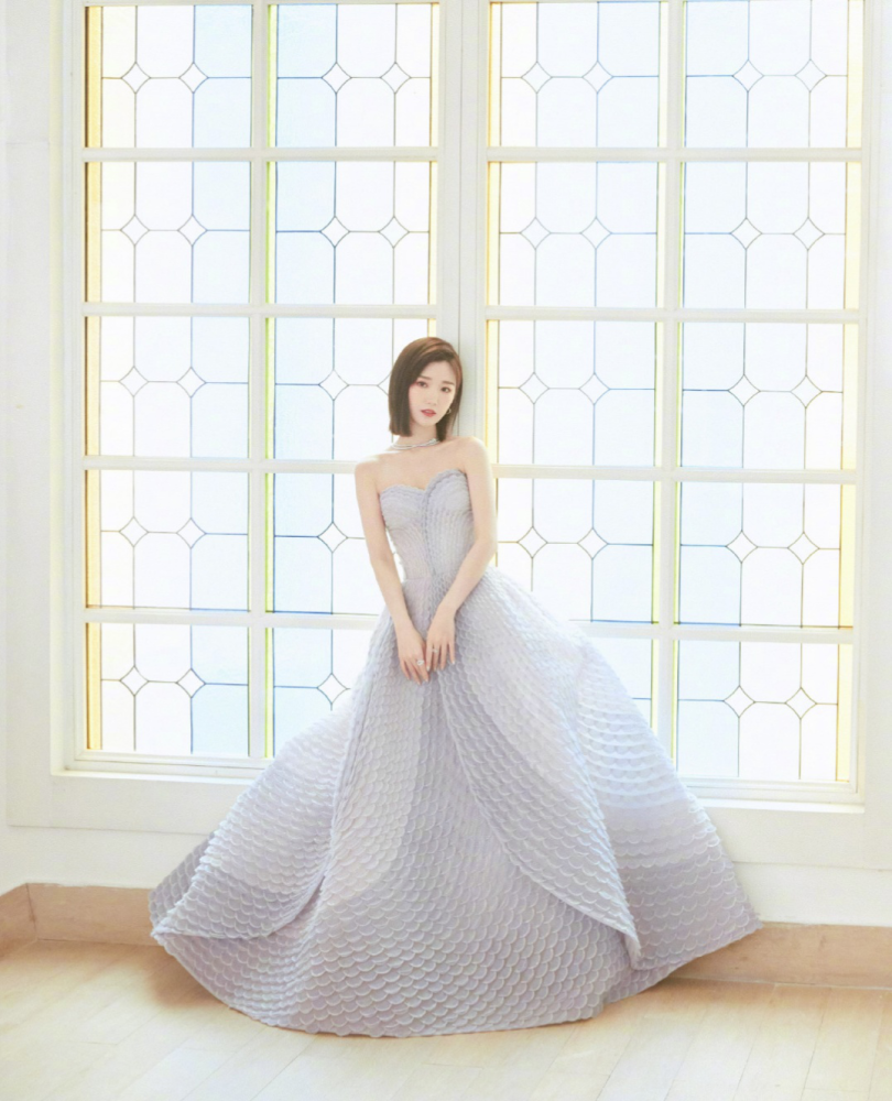这件礼服看着就跟一件婚纱一样,特别的蓬松,显得整个人非常有气场,果然这是小个子女明星也能hold住的款式啊。裙子的整体都是一个颜色,但是这普通的颜色却让人挪不开眼!