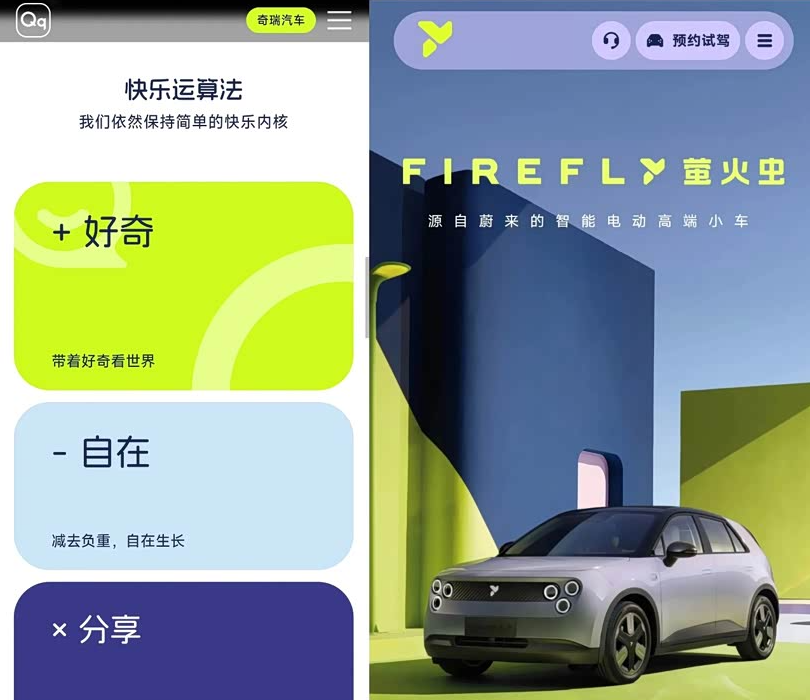 ②奇瑞QQ APP界面被指与蔚来萤火虫雷同,色调、排版、图标几乎照搬;